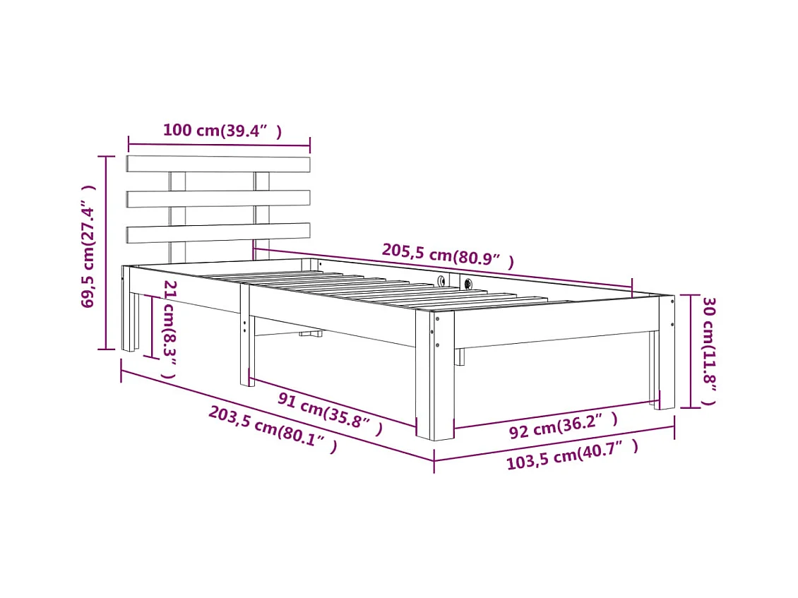 Bedframe massief grenenhout 100x200 cm