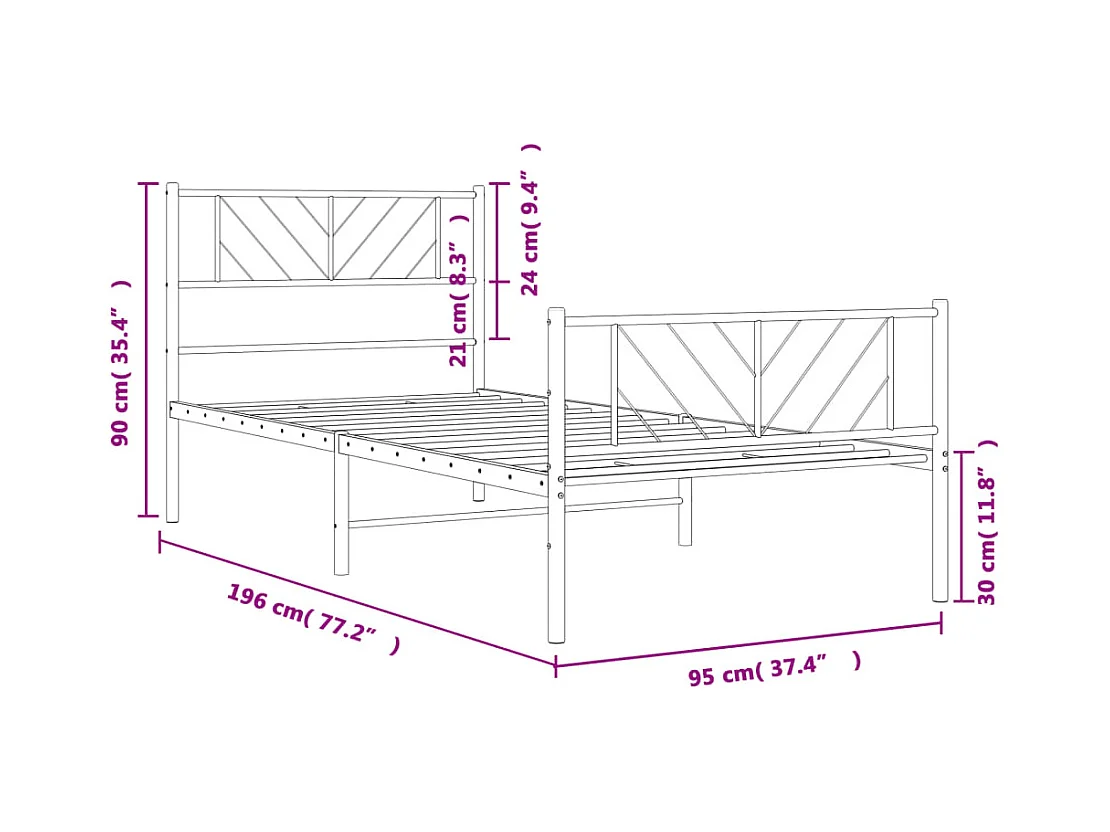 Bedframe met hoofd- en voeteneinde metaal zwart 90x190 cm