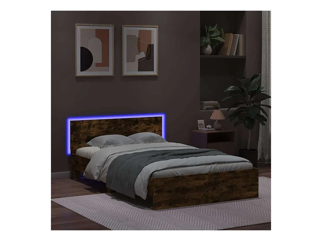 Bedframe met hoofdbord en LED gerookt eiken 120x190 cm