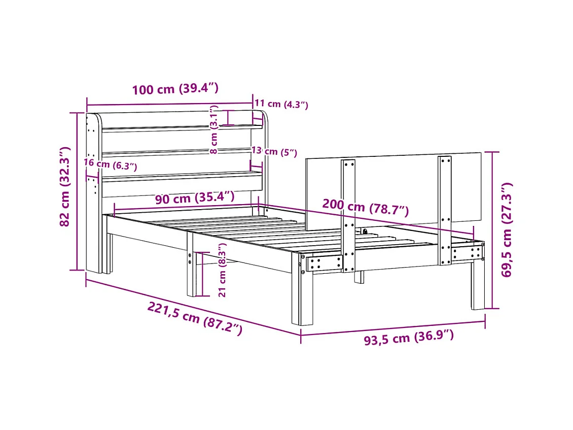 Bedframe met hoofdbord massief grenenhout 90x200 cm