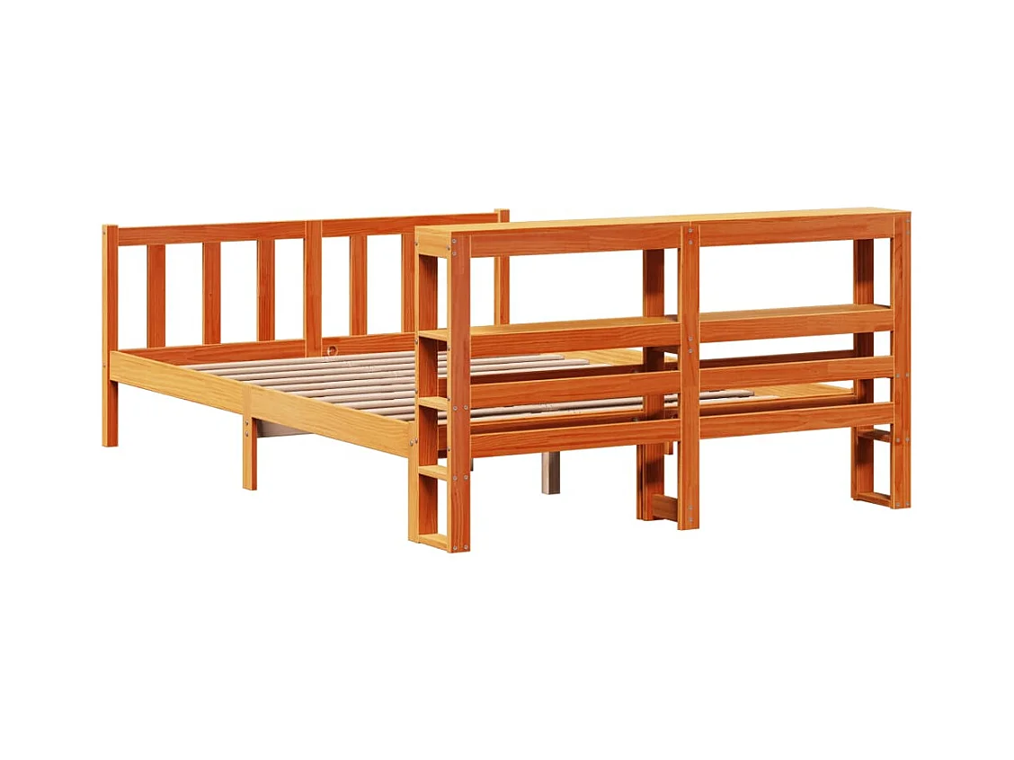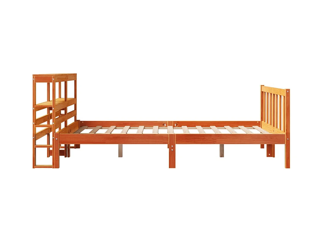 Bed met boekenkast zonder matras grenenhout wasbruin 120x190 cm