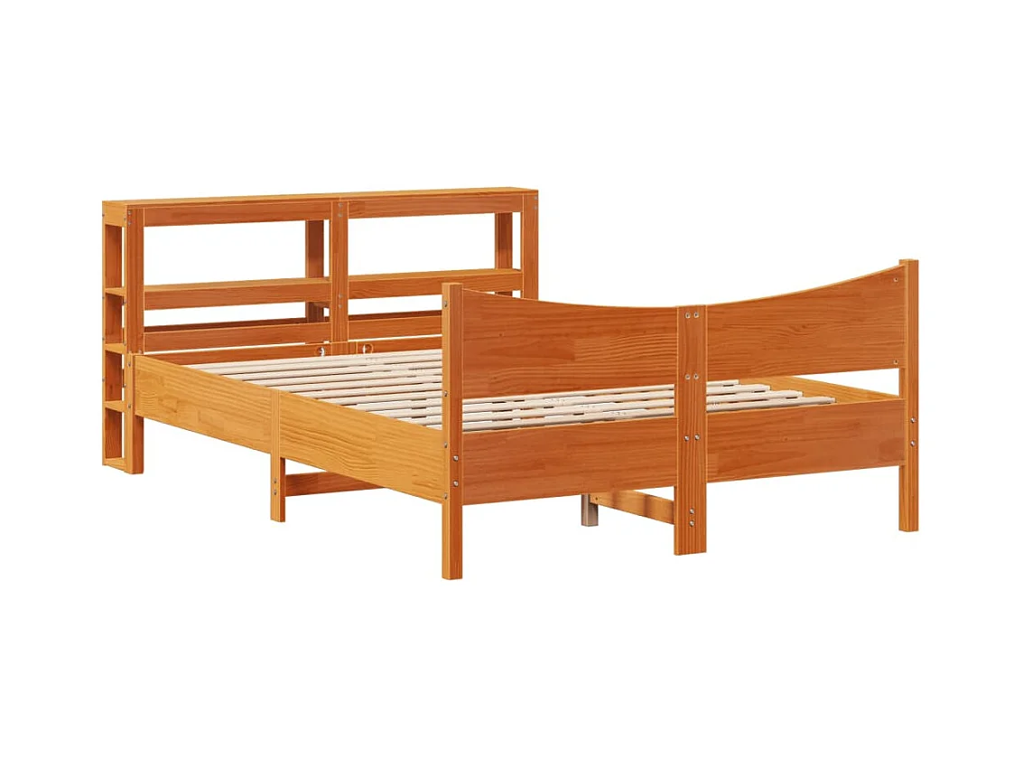 Bed met boekenkast zonder matras grenenhout wasbruin 135x190 cm