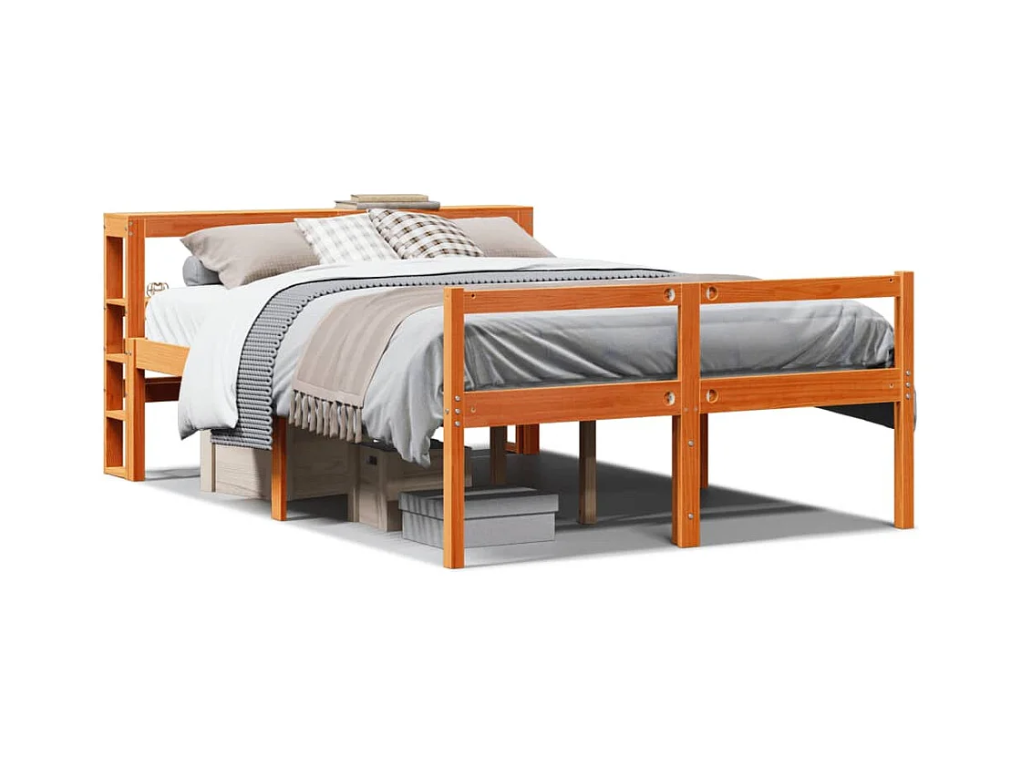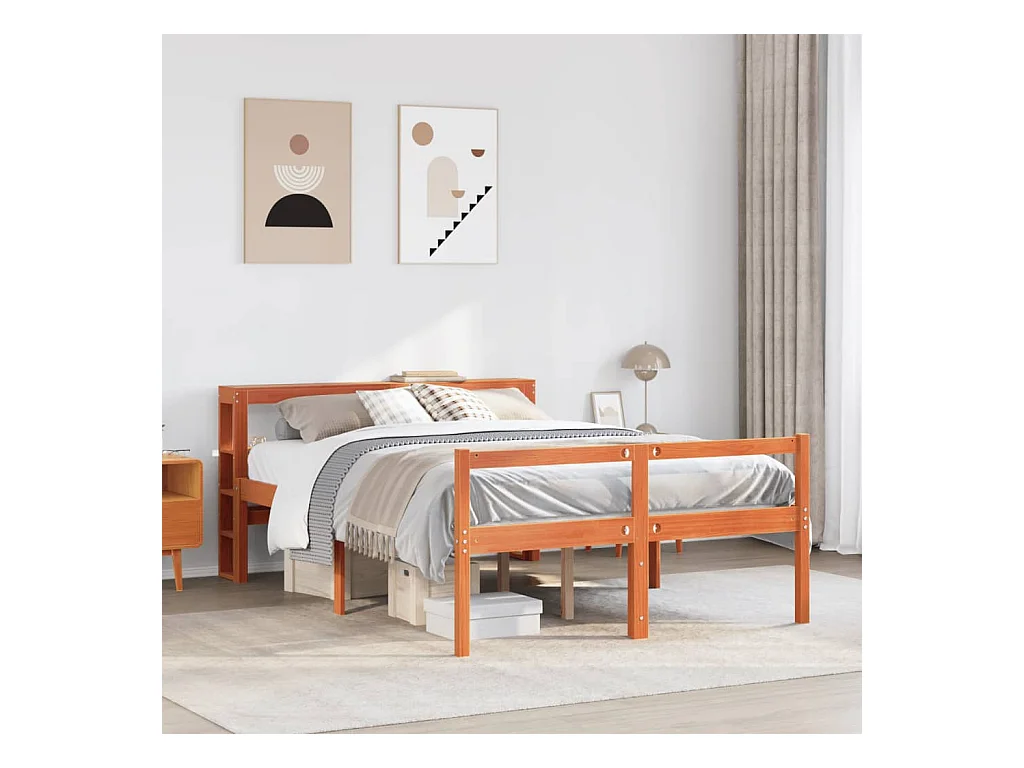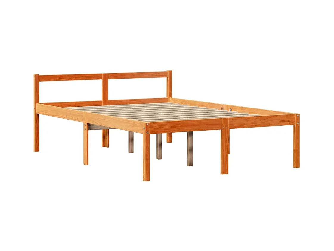 Bedframe met hoofdbord massief grenenhout wasbruin 150x200 cm