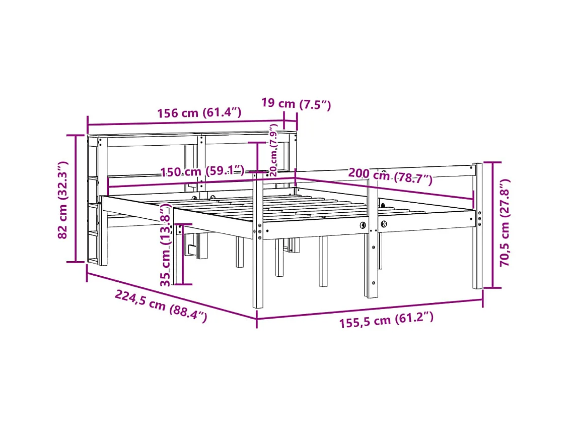Bedframe zonder matras massief grenenhout 150x200 cm
