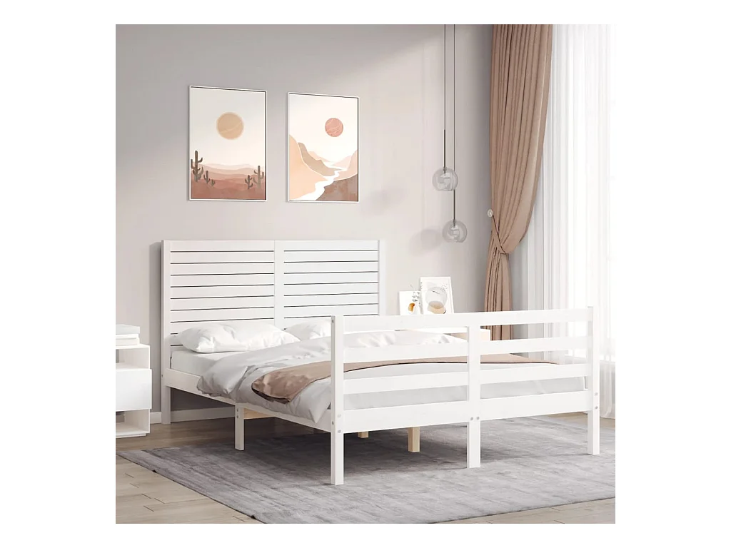 Bedframe met hoofdbord massief hout wit 140x190 cm
