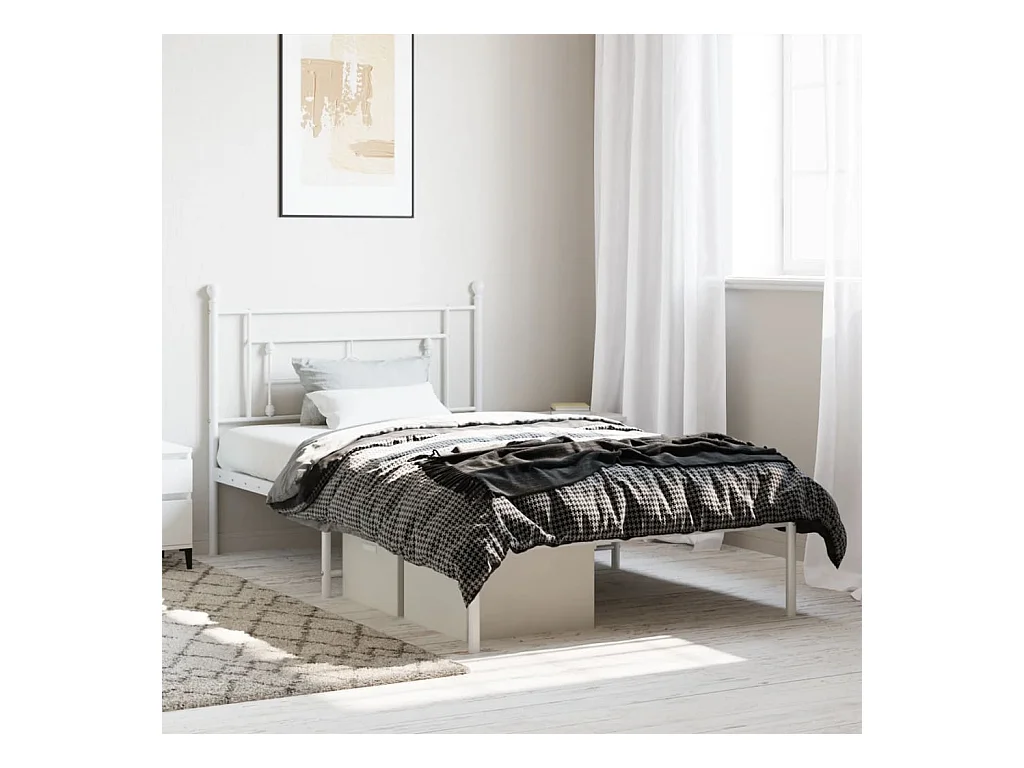 Bedframe met hoofdbord metaal wit 107x203 cm