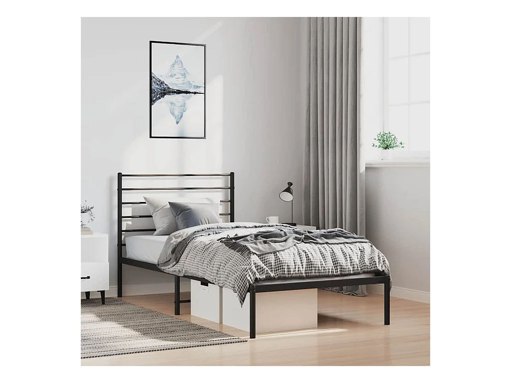 Bedframe met hoofdbord metaal zwart 100x190 cm