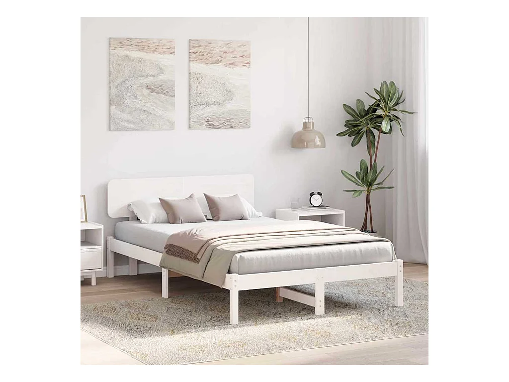 Wit bedframe 140 x 190 cm Massief grenenhout
