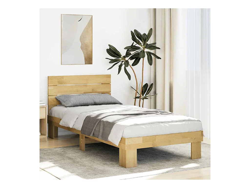 Bedframe zonder matras met hoofdbord 75x190 cm massief grenen