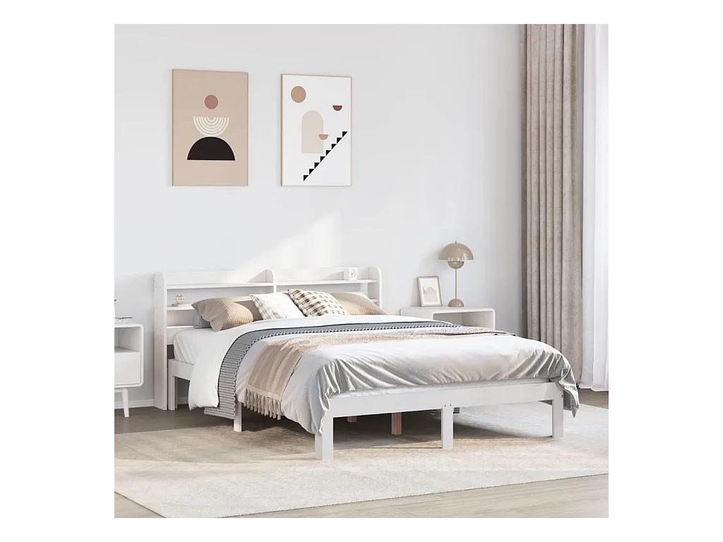 Bibliotheekbed zonder matras wit 140x190 cm massief grenenhout