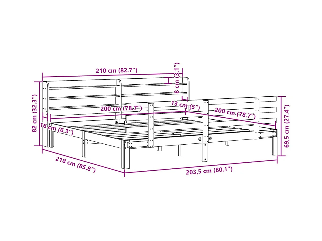 Bedframe zonder matras wit 200x200 cm massief grenenhout