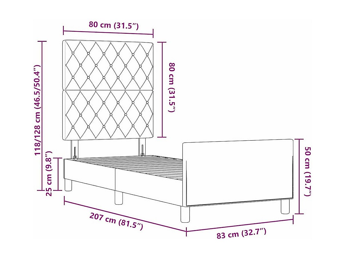 Bedframe met hoofdeinde Donkergrijs 80 x 200 cm Stof