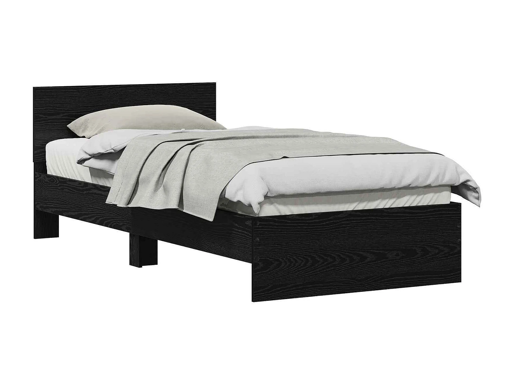 Bedframe met hoofdeinde Zwart Eiken 90 x 190 cm Bewerkt hout