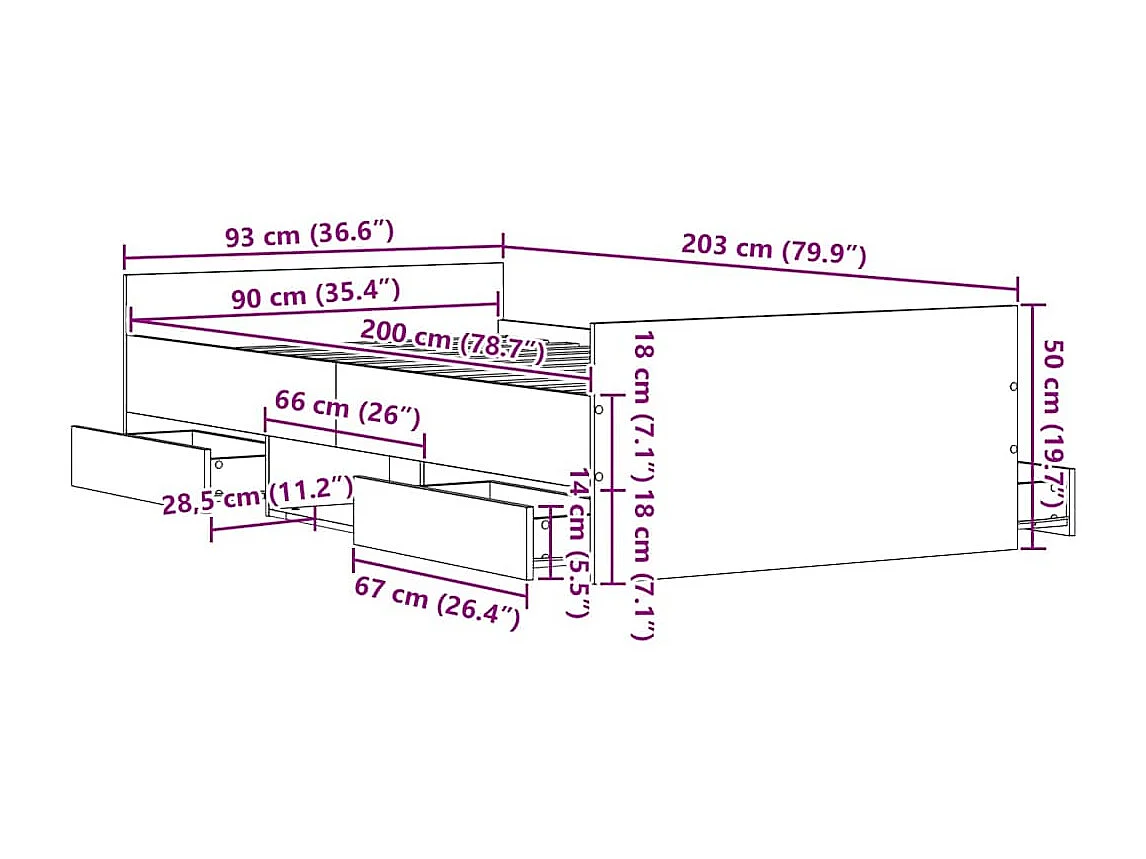 Bedframe voor een daybed Zwart 90 x 200 cm Gepoedercoat staal