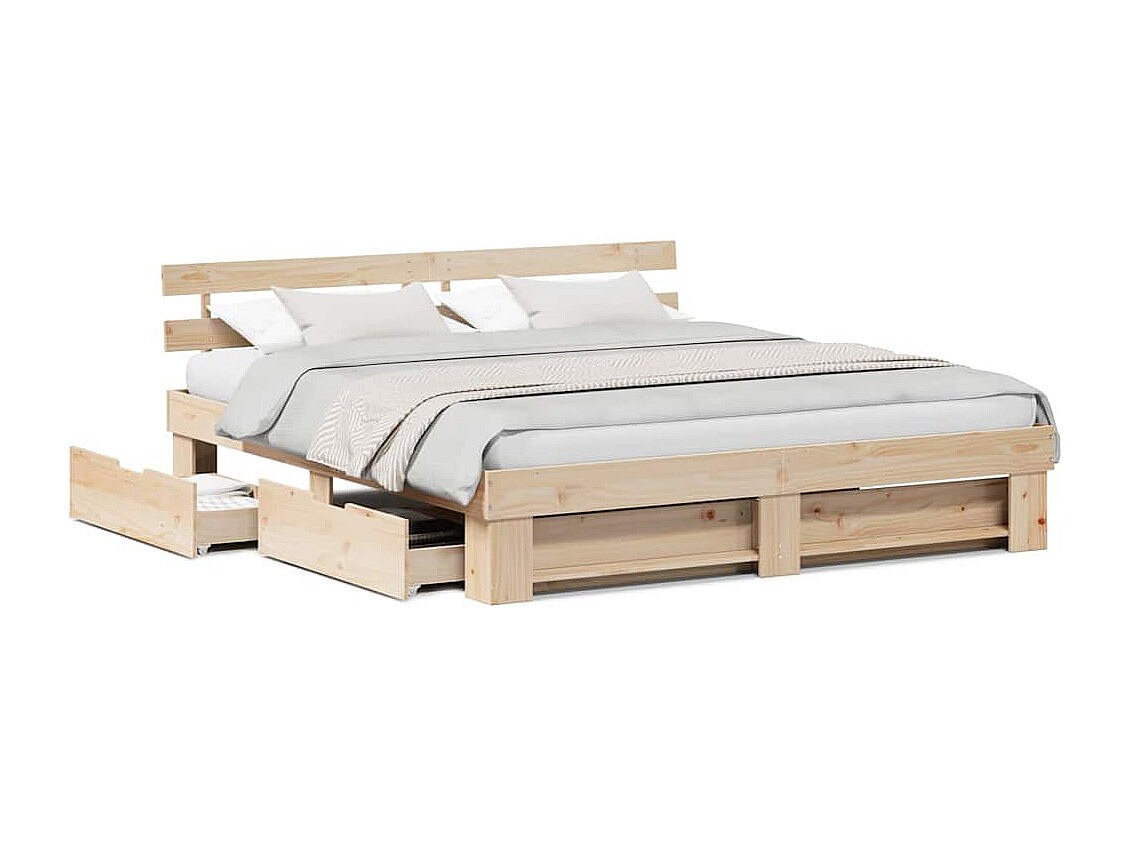 Bedframe met lade Bruin 200 x 200 cm Massief grenenhout