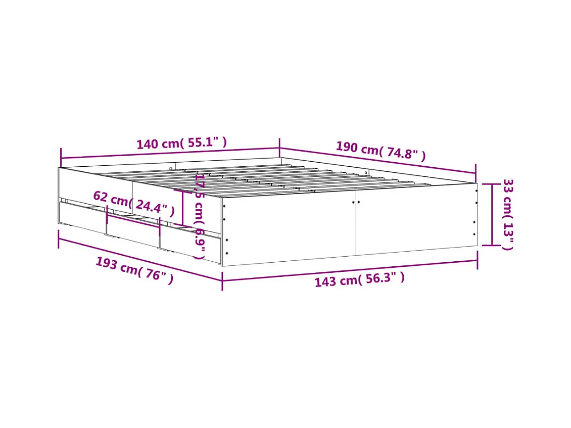 Bedframe met lades bewerkt hout bruin eikenkleur 140x190 cm