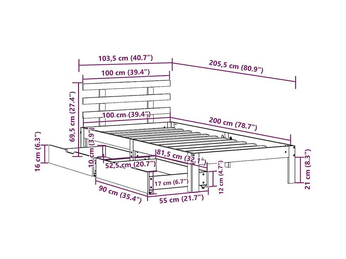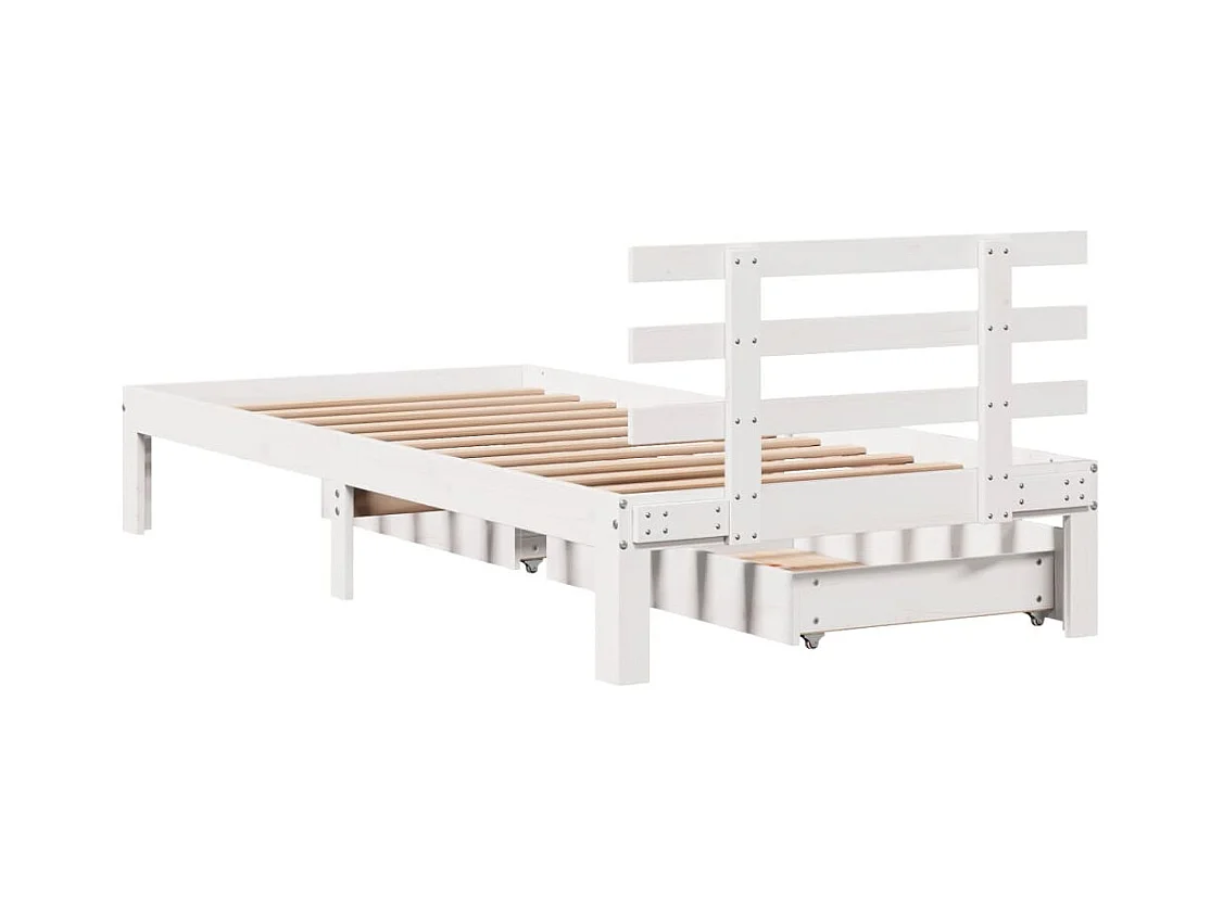 Bedframe met lades massief grenenhout wit 100x200 cm