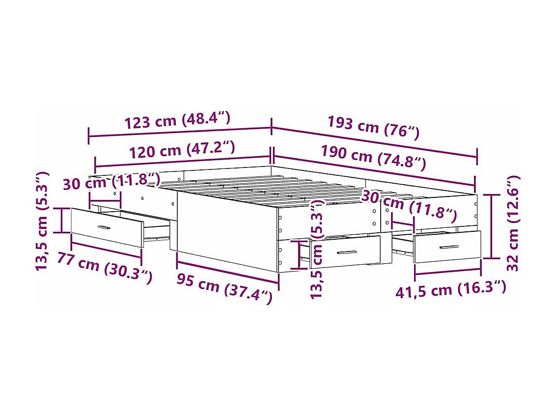 Bedframe met lades artisanaal eikenkleurig 120 x 190 cm