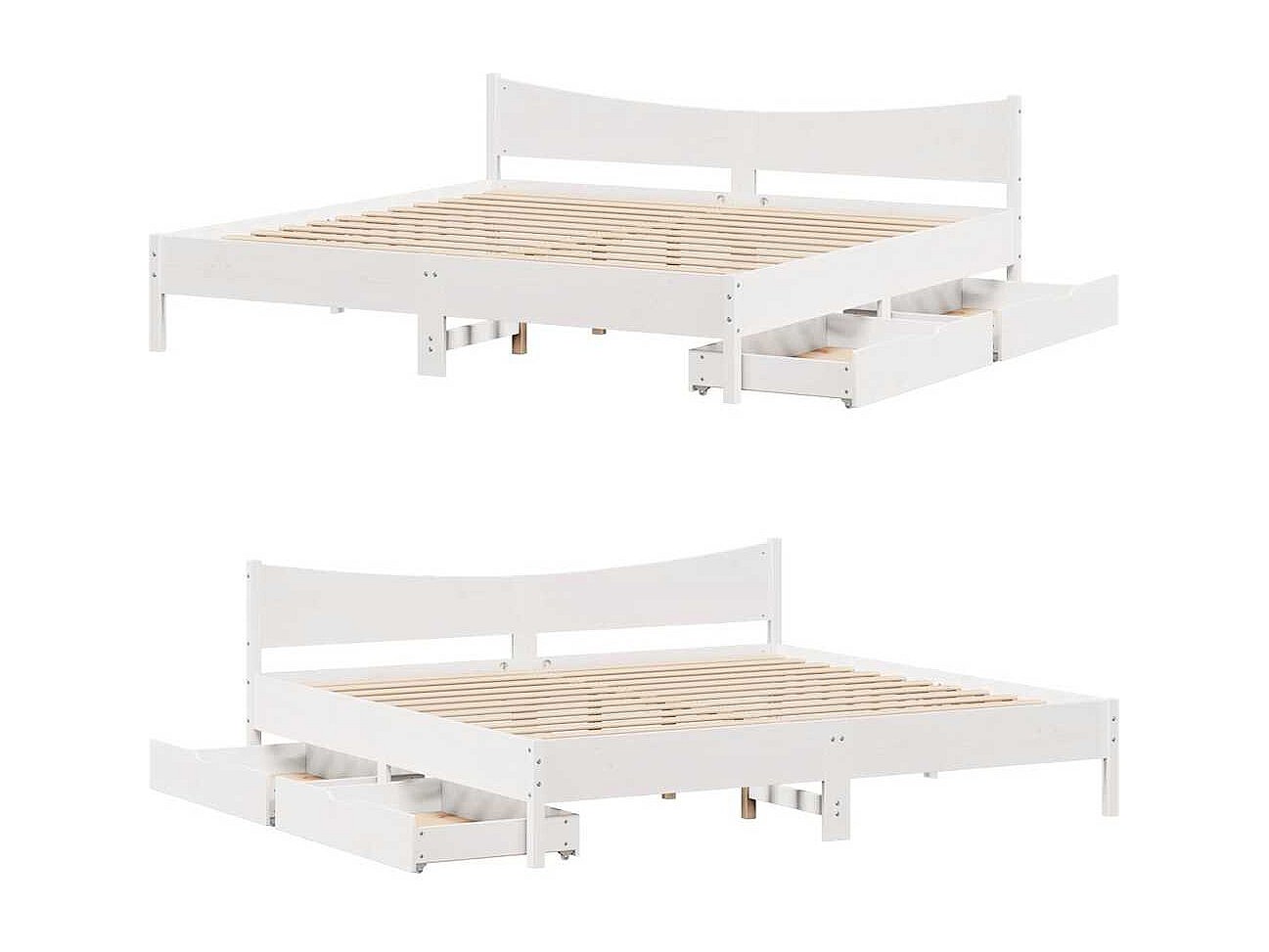 Bedframe met lades wit 200x200 cm massief grenenhout