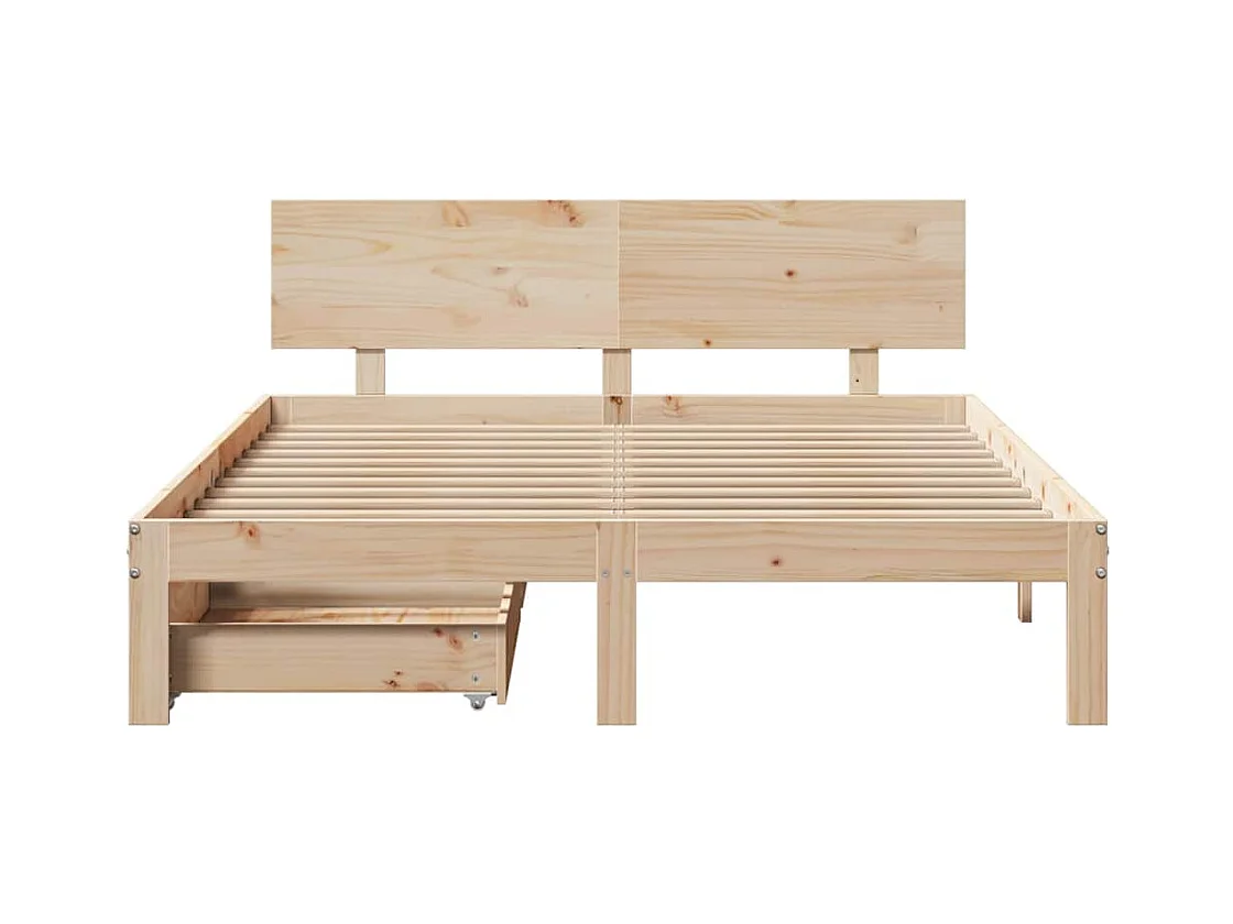 Bedframe en hoofdbord zonder matras bruin gewaxt 120x190 cm