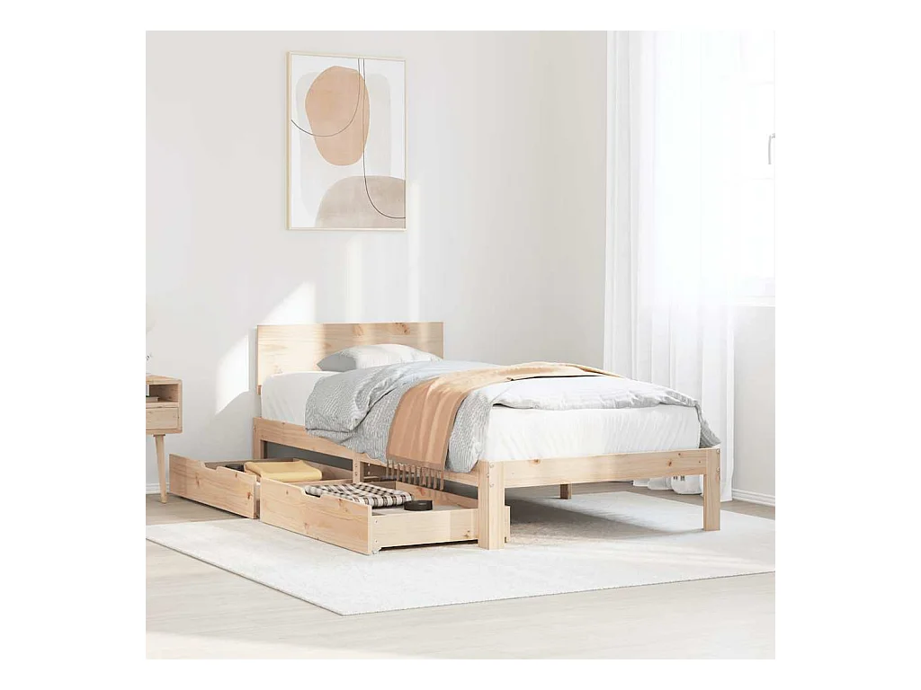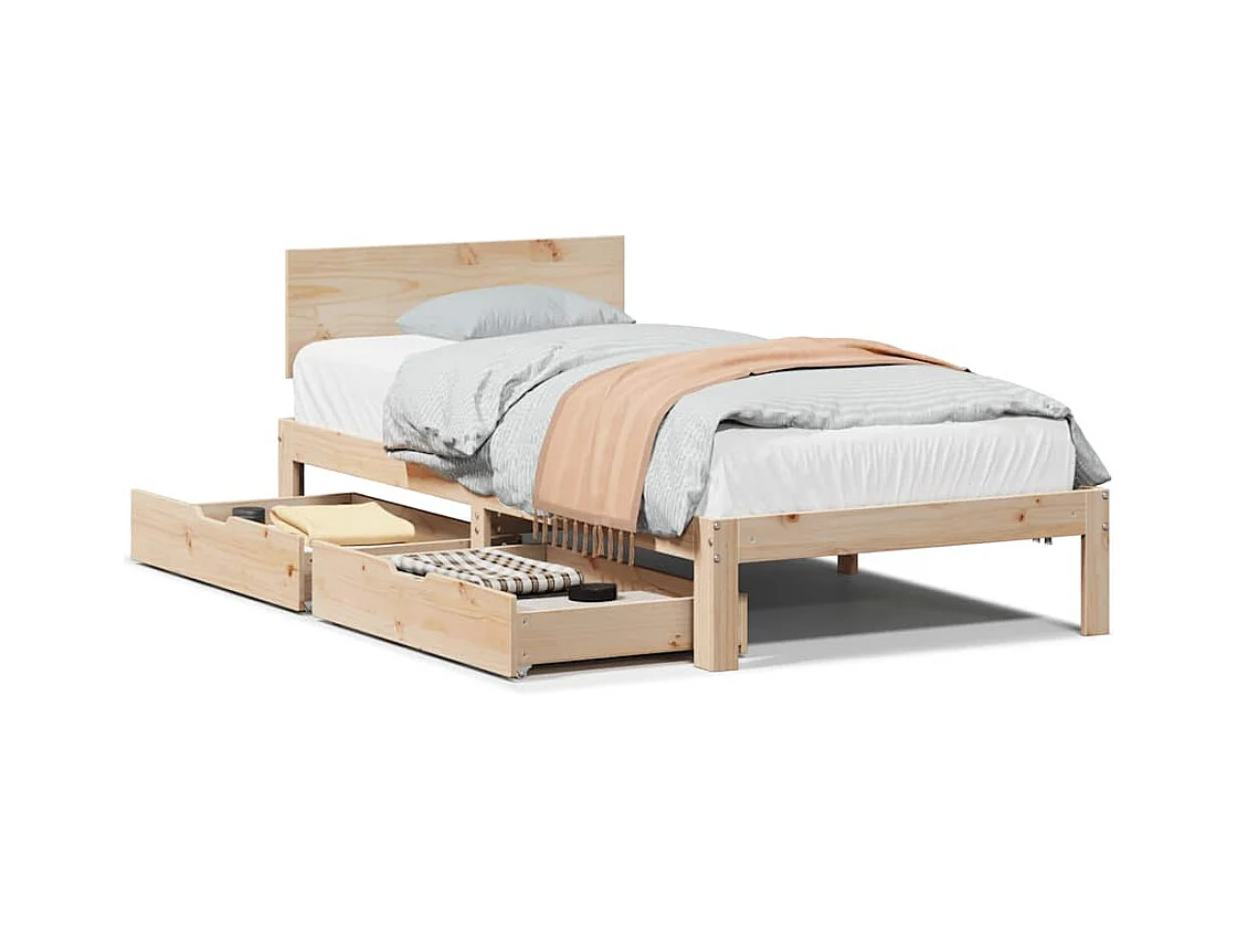 Bedframe zonder matras met hoofdbord 75x190 cm massief grenen