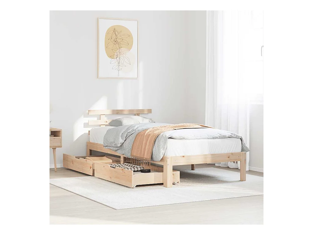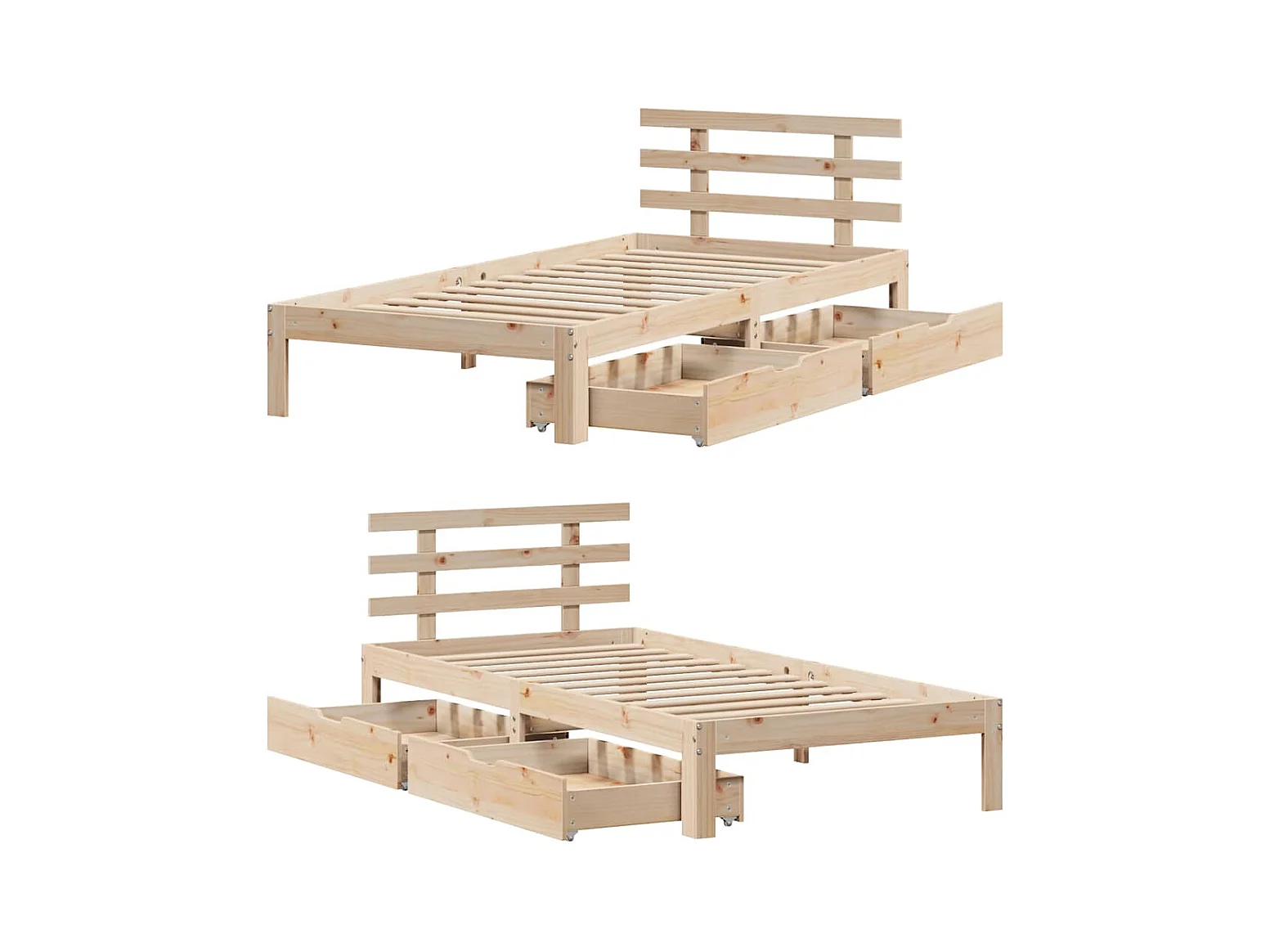 Bedframe met lade Bruin 90 x 190 cm Massief grenenhout