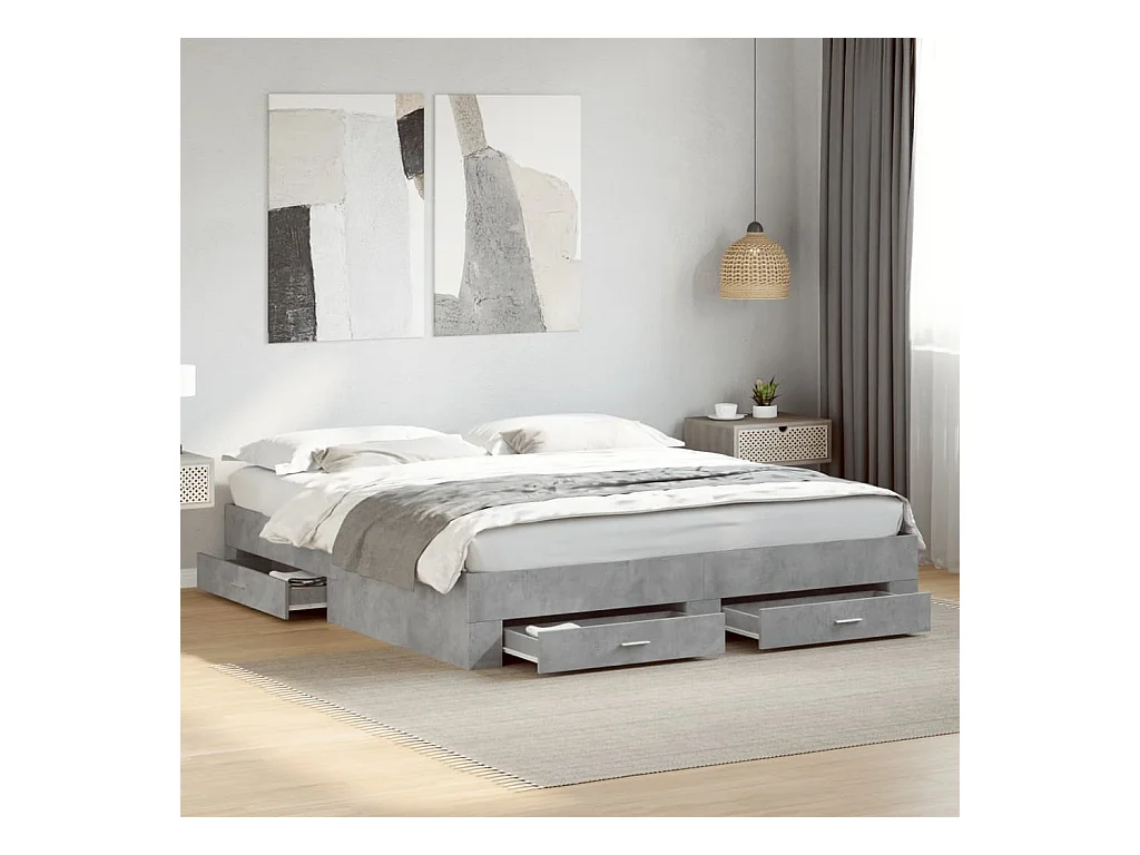 Bedframe met lades zonder matras betongrijs 200x200 cm
