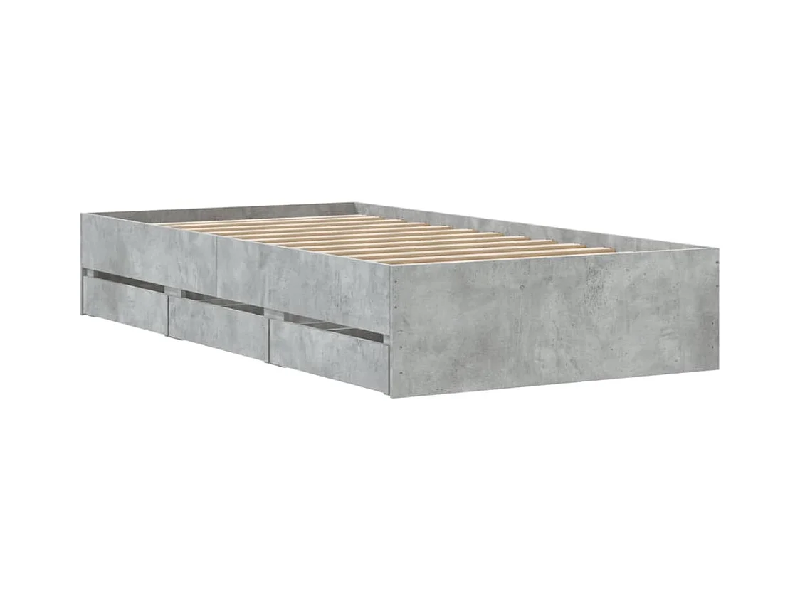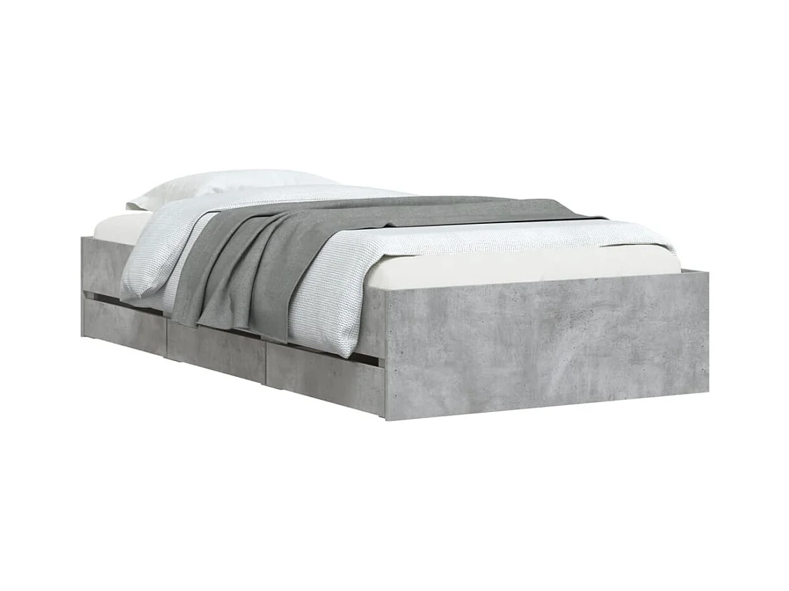 Bedframe met lades zonder matras betongrijs 75x190 cm