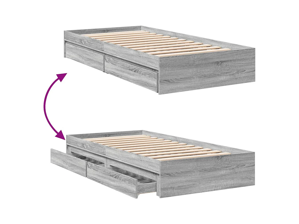 Bedframe met lades zonder matras Sonoma grijs 75x190 cm