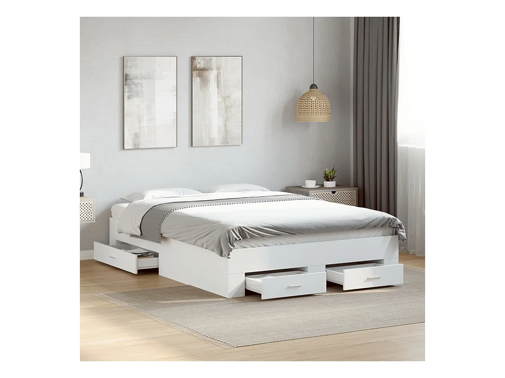 Bedframe zonder matras wit 135x190 cm bewerkt hout