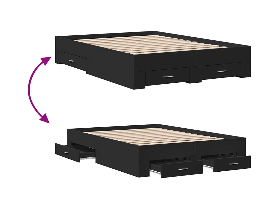 Bedframe met lades met lade Zwarte eik 120 x 190 cm