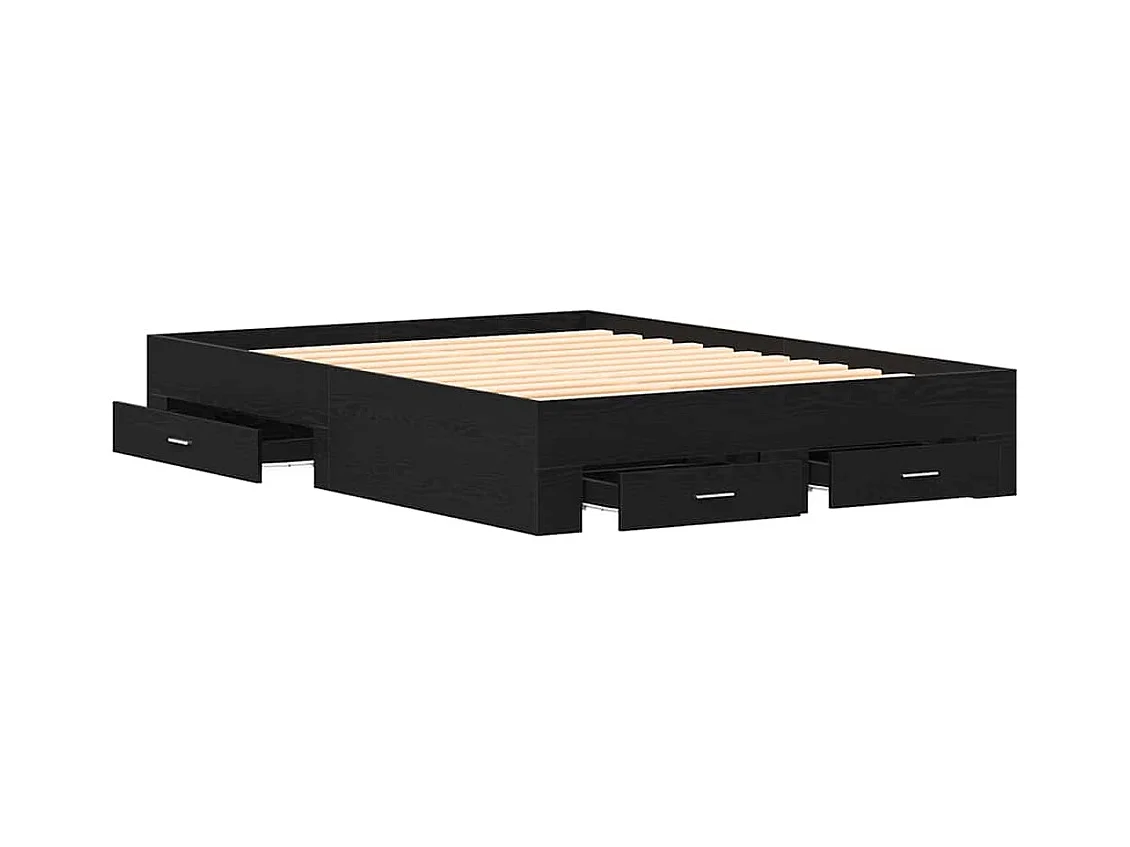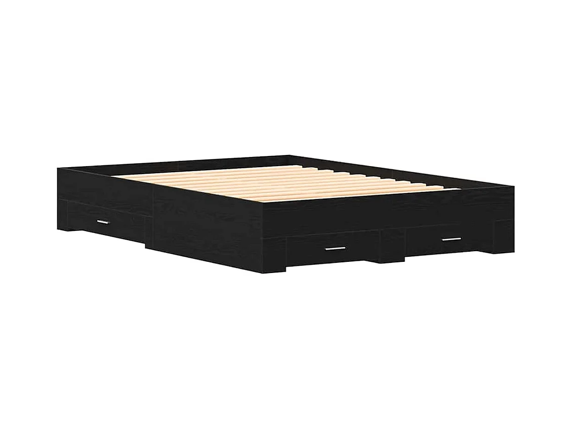 Bedframe met lades Zwart eiken 160 x 200 cm Bewerkt hout