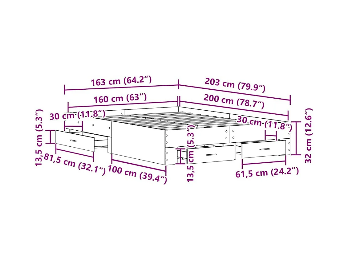 Bedframe met lades met lade Zwarte eik 160 x 200 cm