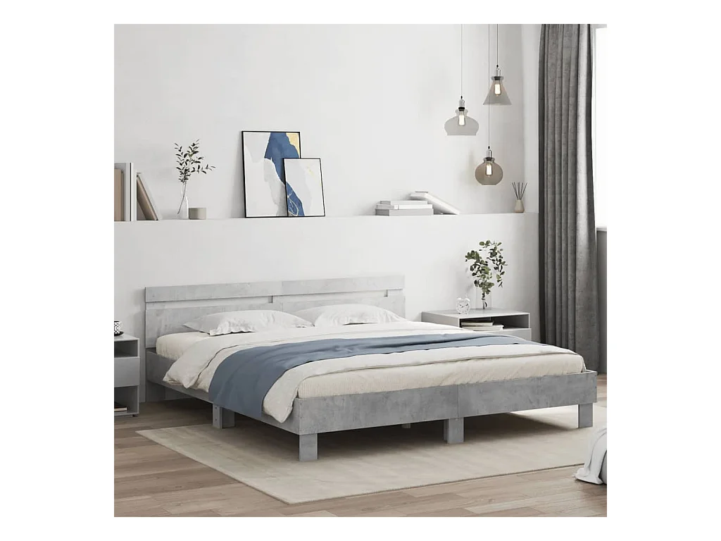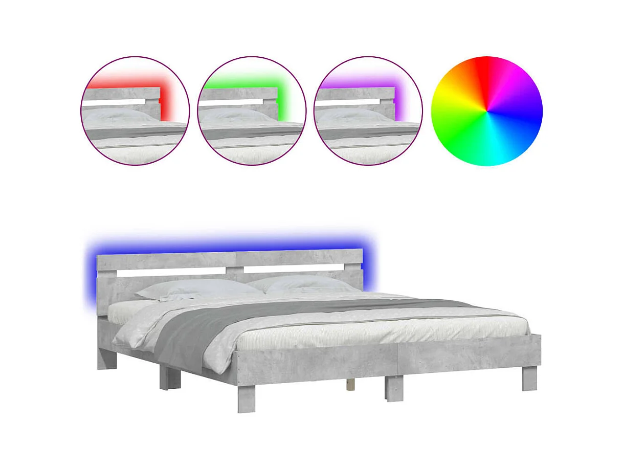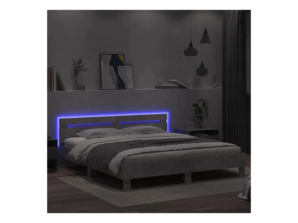Bedframe met LED zonder matras betongrijs 180x200 cm