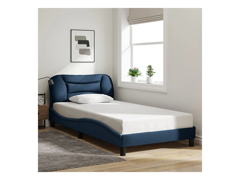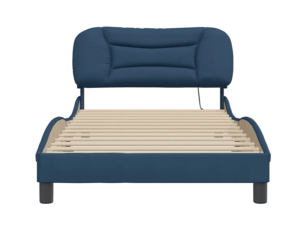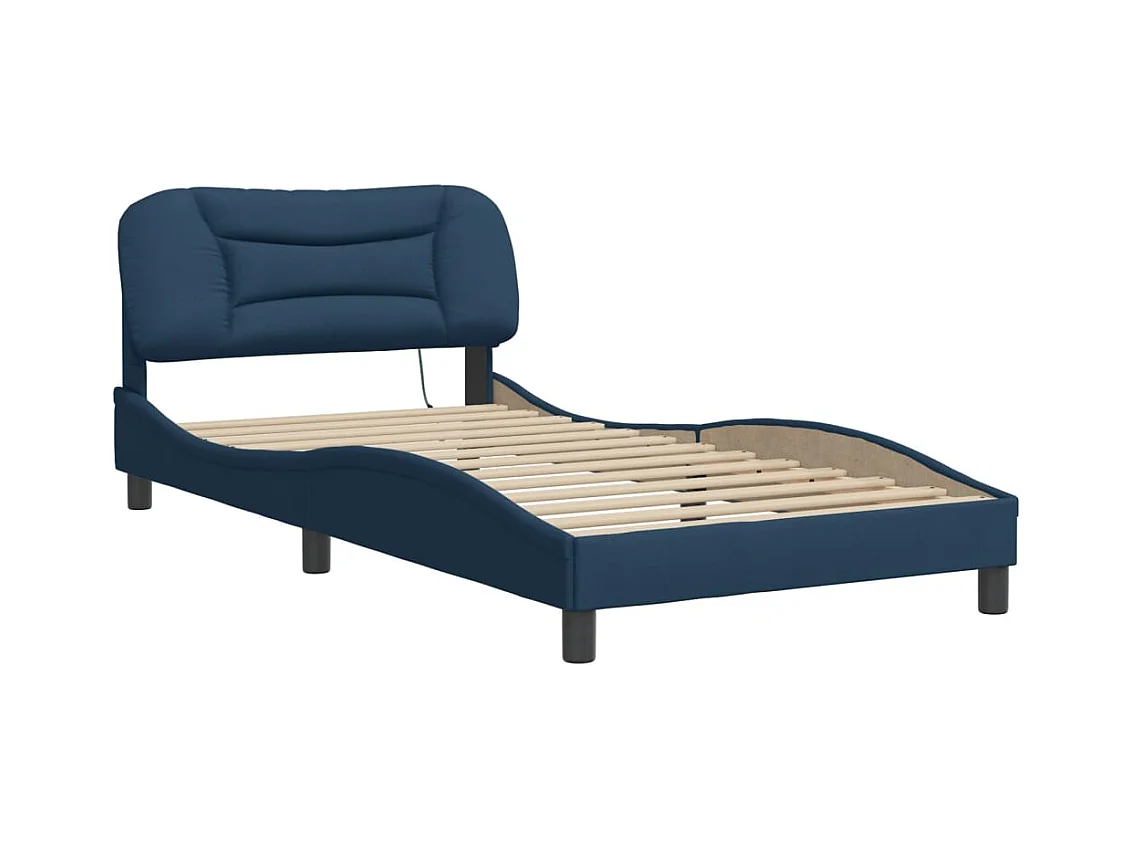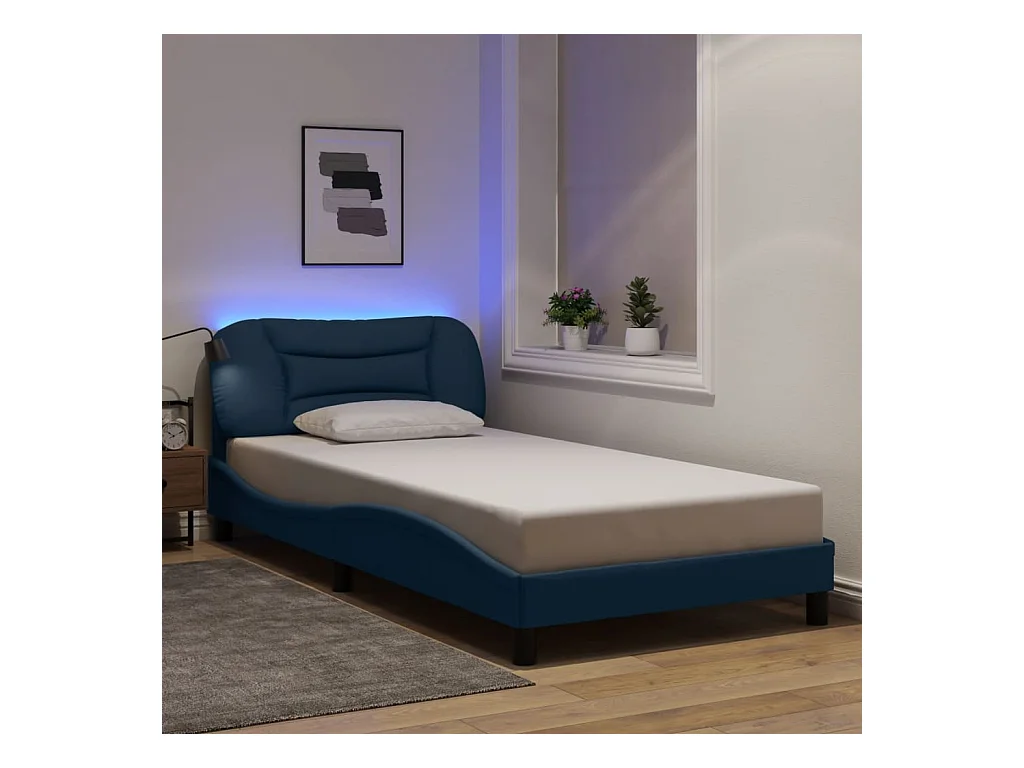 Bedframe met LED zonder matras blauw 100x200 cm stof