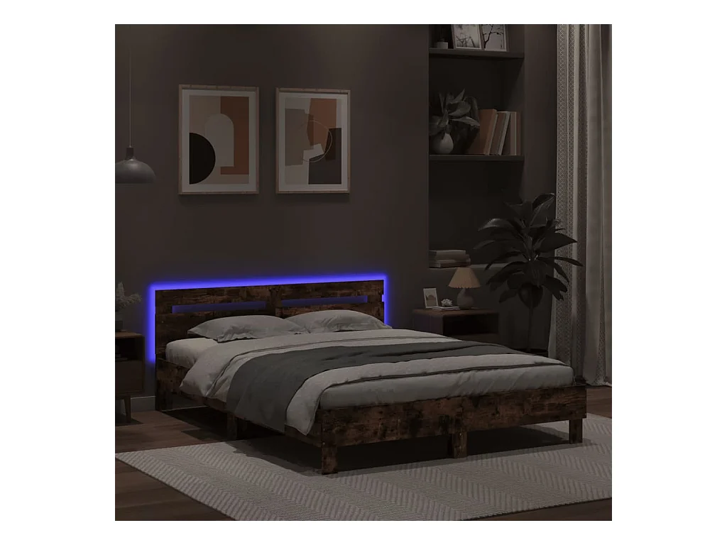 Bedframe met hoofdbord en LED gerookt eiken 140x200 cm