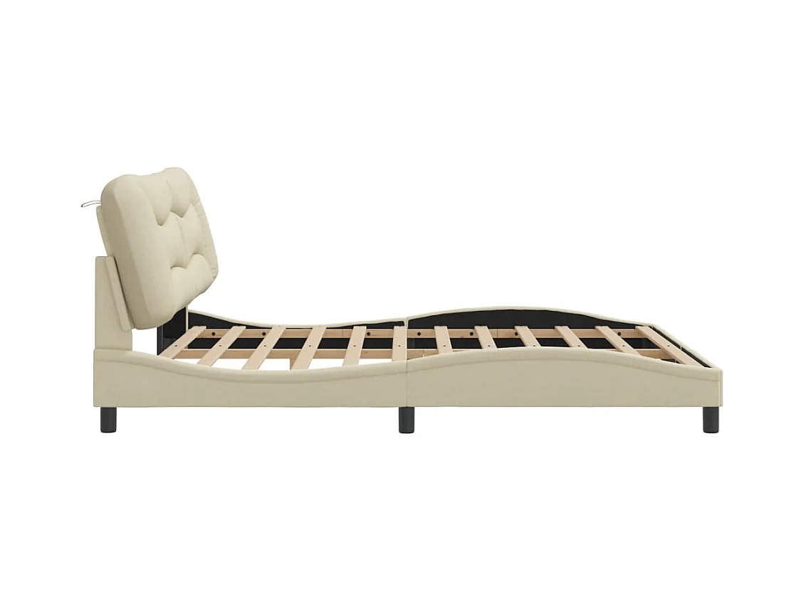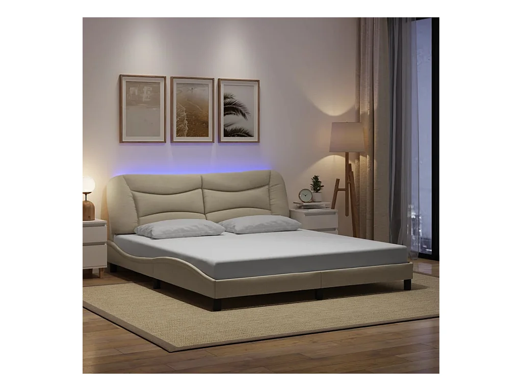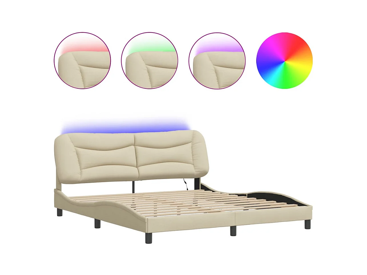 Bedframe met LED zonder matras crème 180x200 cm stof