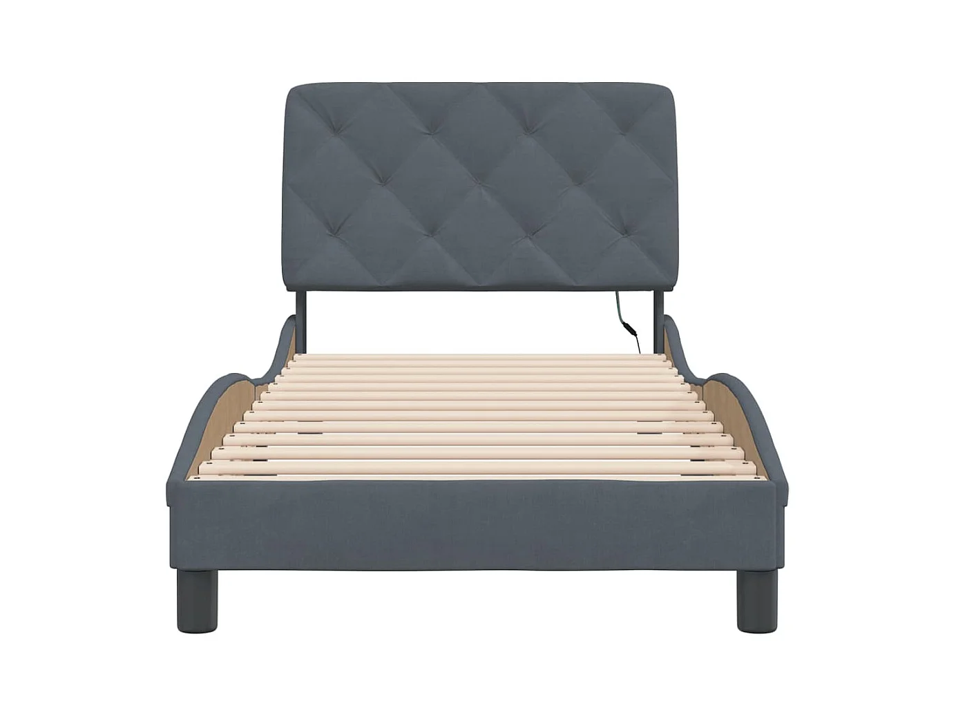 Bedframe met LED zonder matras donkergrijs 90x200 cm fluweel