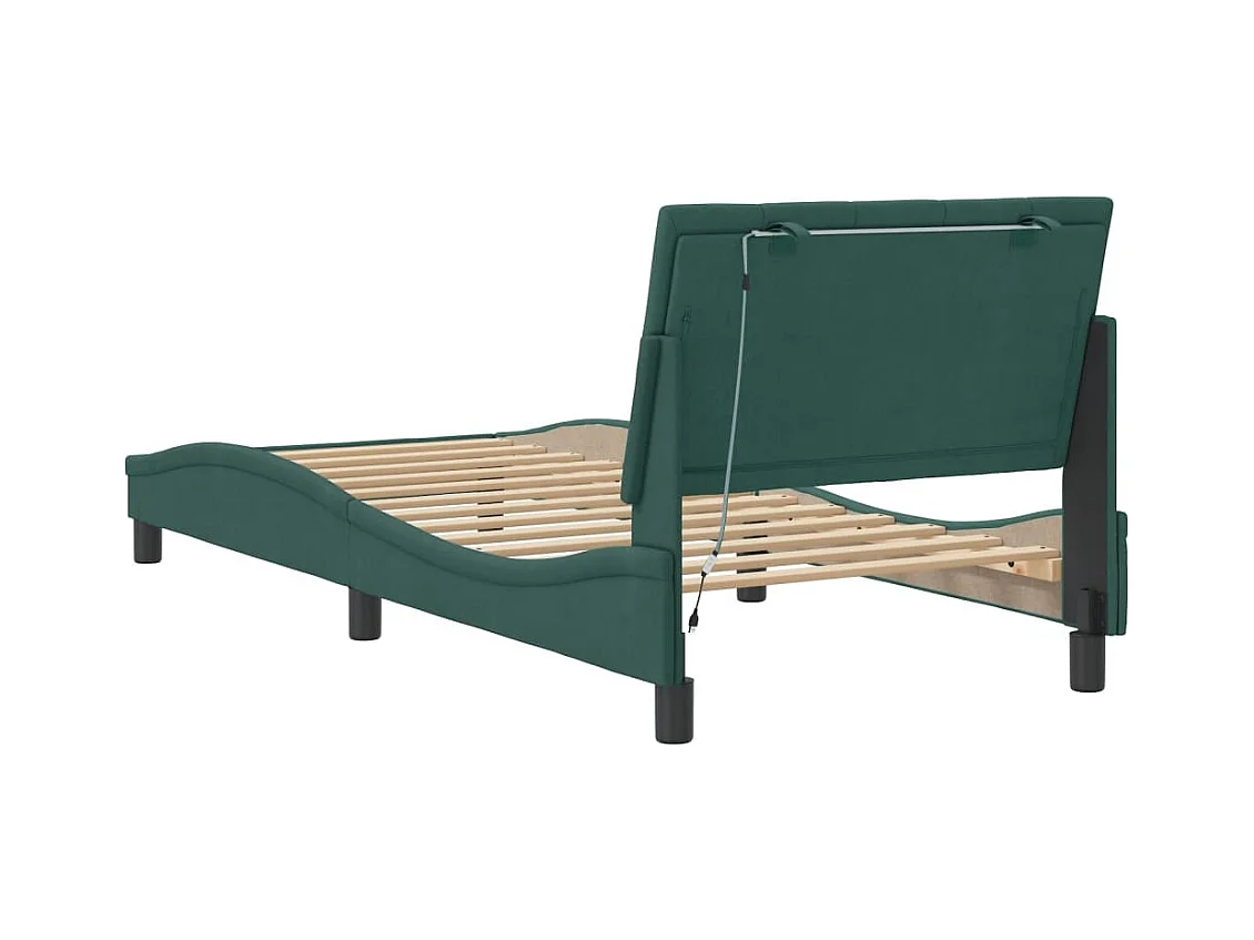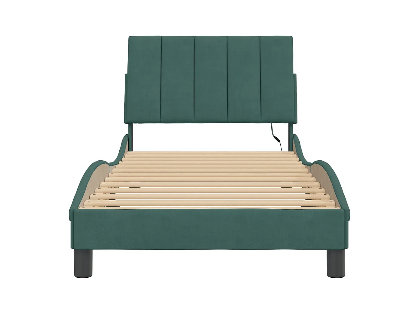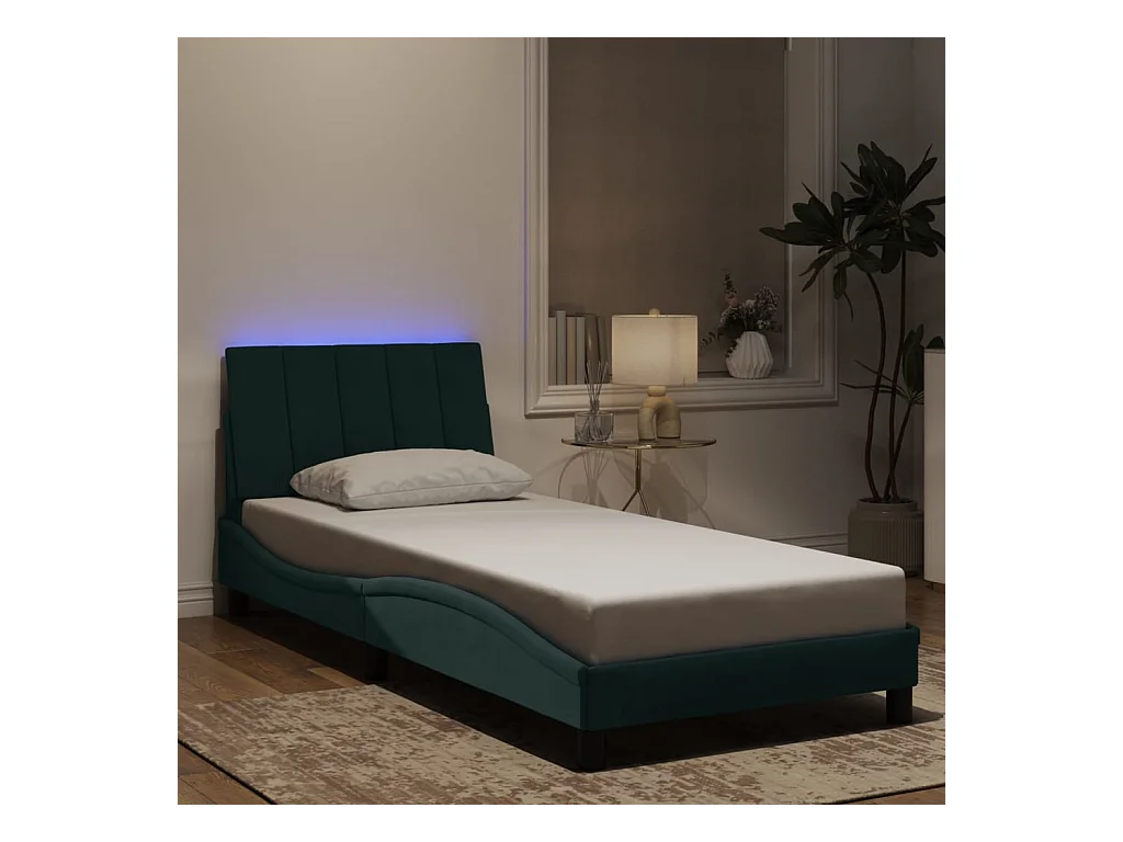 Bedframe met LED zonder matras donkergroen 90x190 cm fluweel