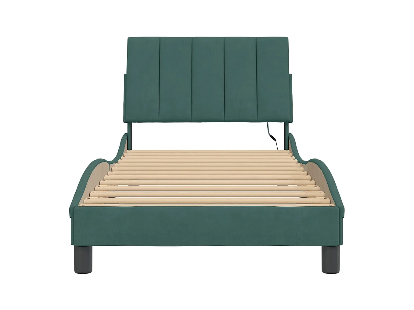 Bedframe met LED zonder matras donkergroen 90x200 cm fluweel