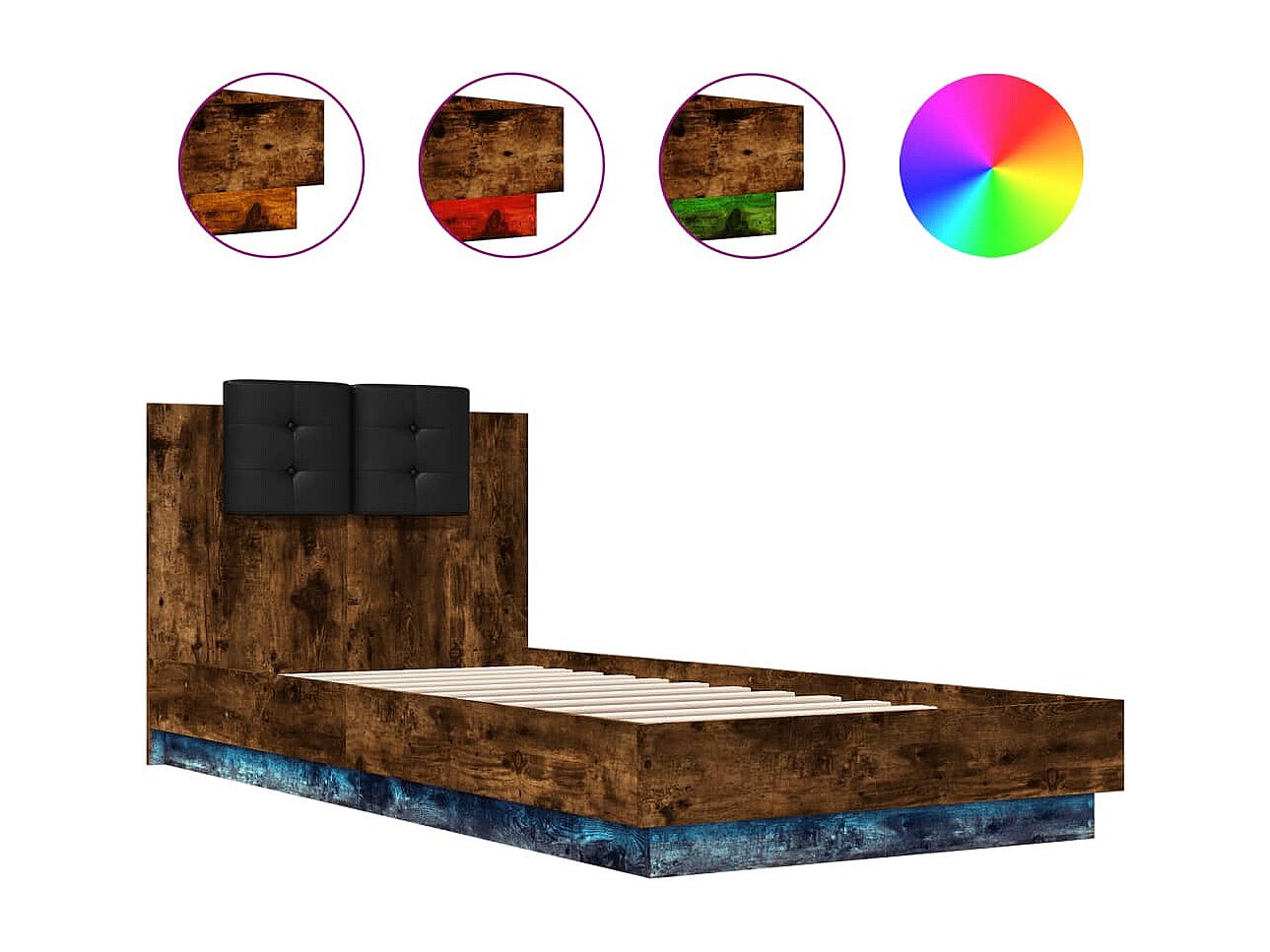 Bedframe met LED zonder matras gerookt eiken 100x200 cm