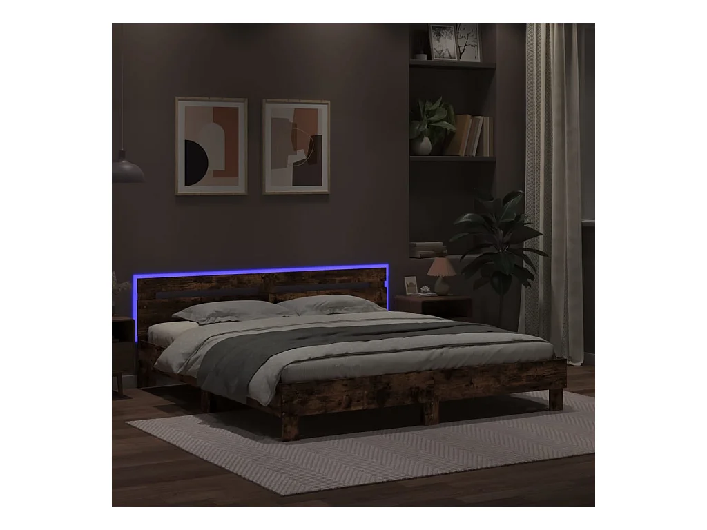 Bedframe met LED zonder matras gerookt eiken 180x200 cm