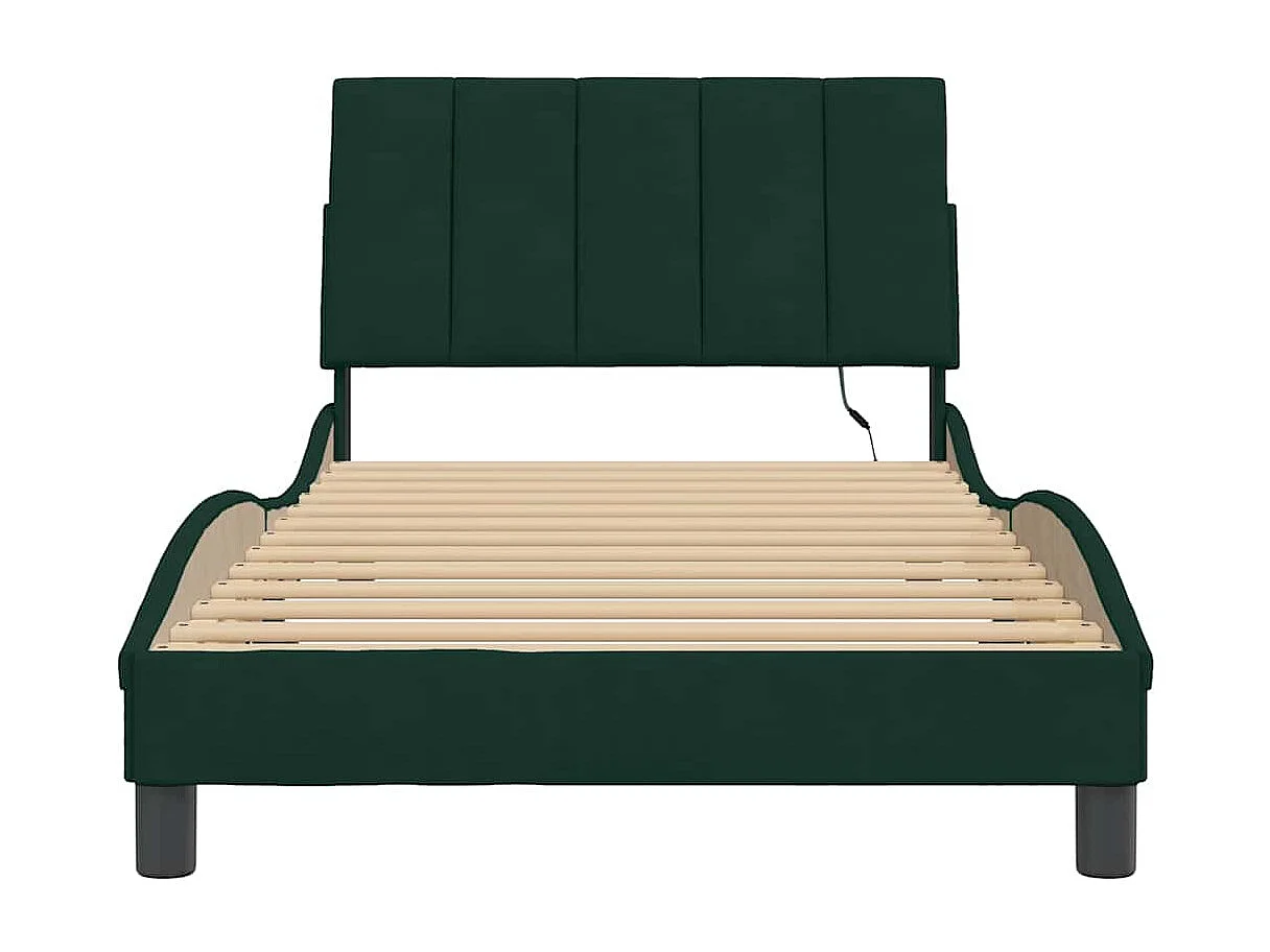 Bedframe met LED zonder matras "Hanko" fluweel donkergroen 100x200 cm