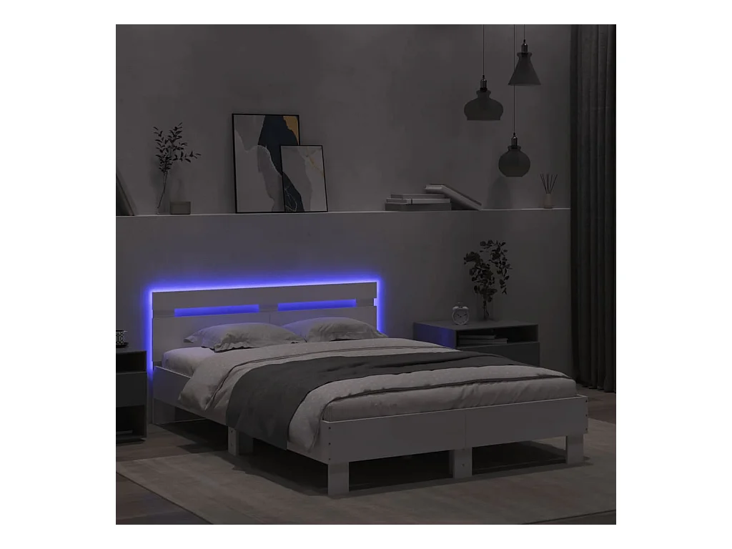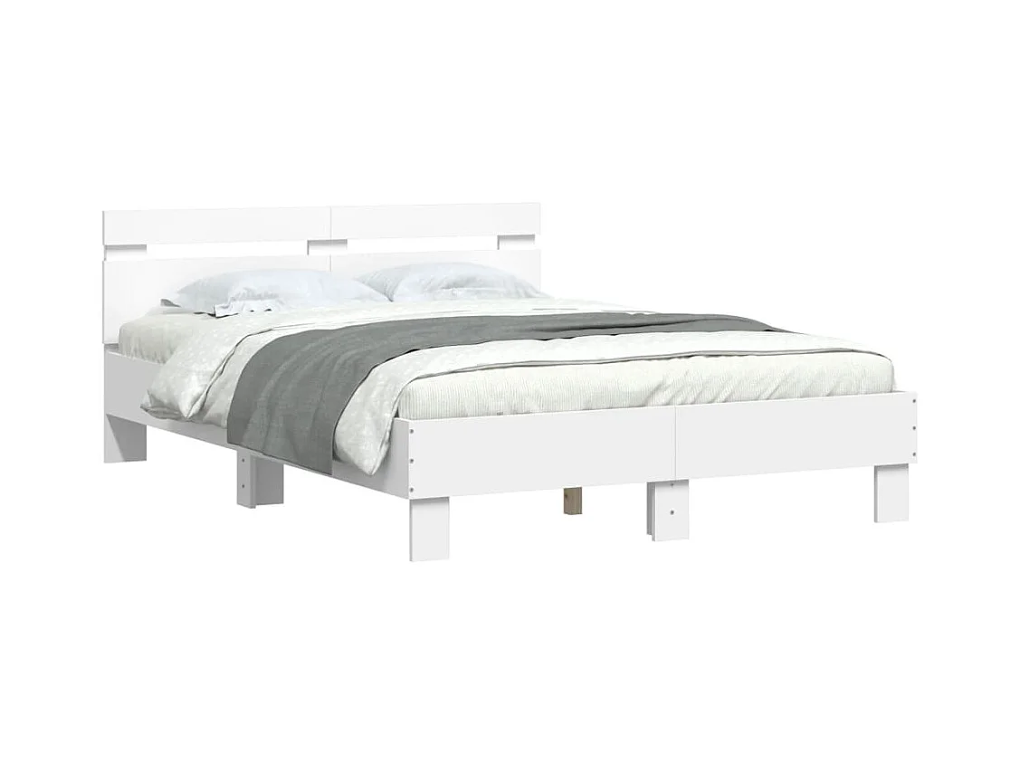 Bedframe en hoofdbord zonder matras wit 135x190 cm