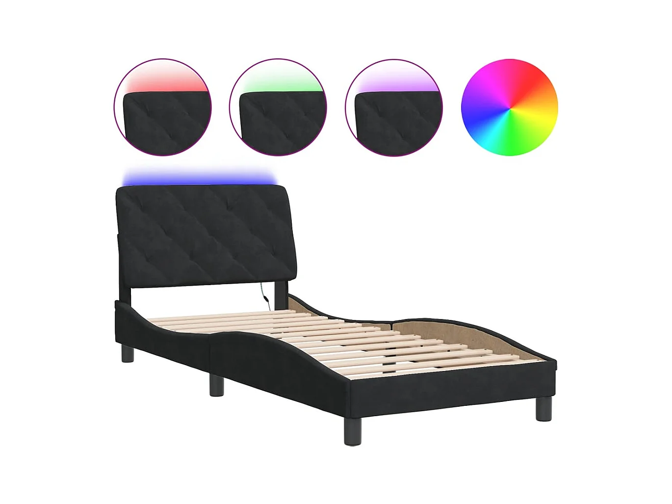 Bedframe met LED zonder matras zwart 80x200 cm fluweel