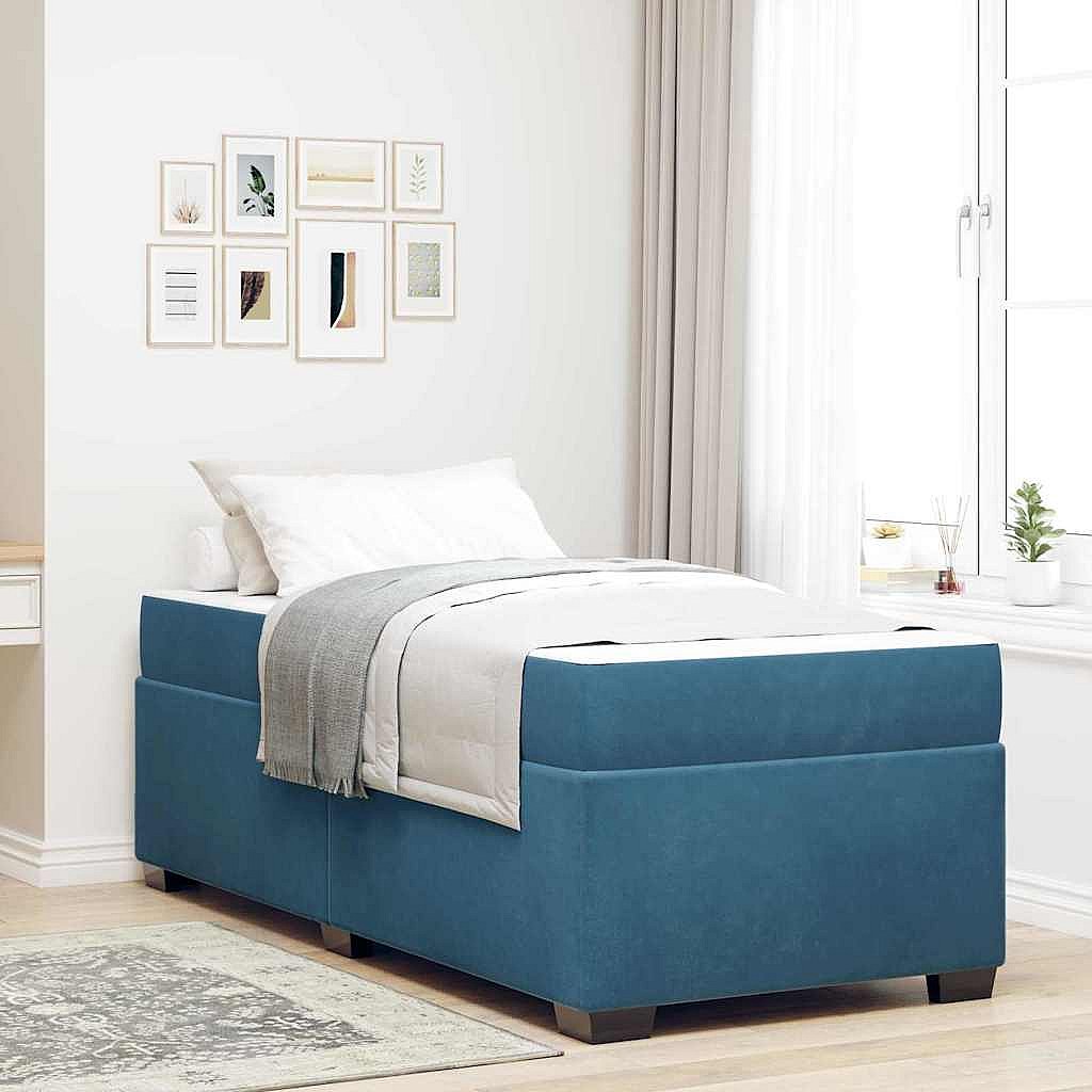 Bedframe met matras Donkerblauw 90 x 200 cm Fluweel