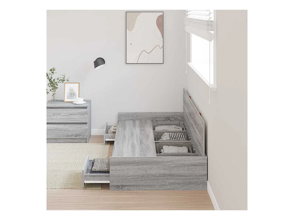 Bedframe met lades zonder matras Sonoma grijs 90x200 cm