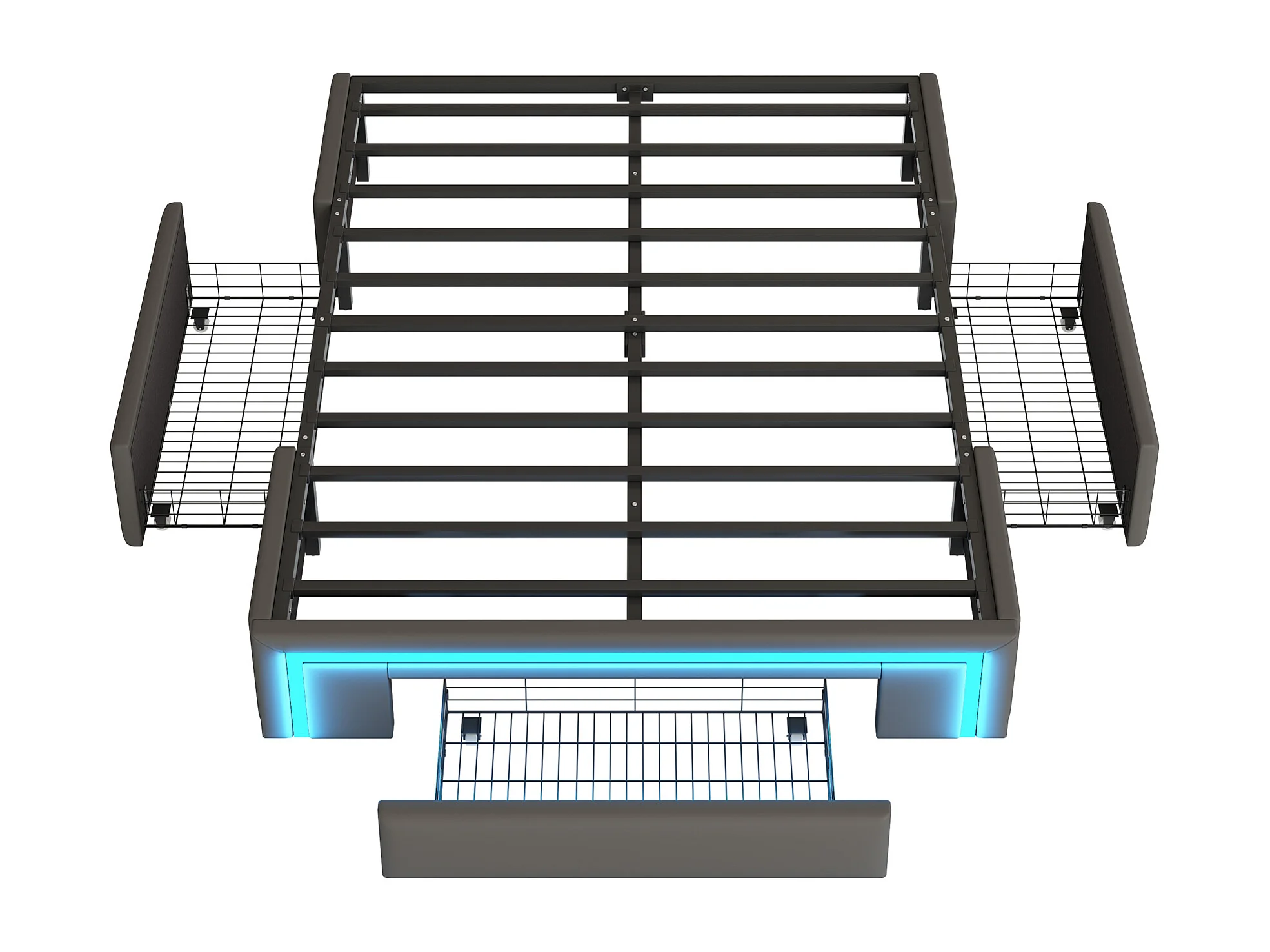 Bedframe van 160x200 cm met lades, led-lichtstrip en lattenbodem, platformbed, grijs, zonder hoofdbord of matras