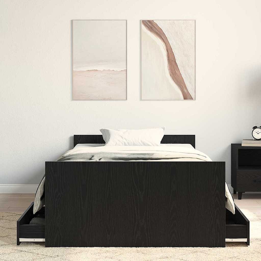 Bedframe van zwart eikenhout, 90 x 190 cm, bewerkt hout