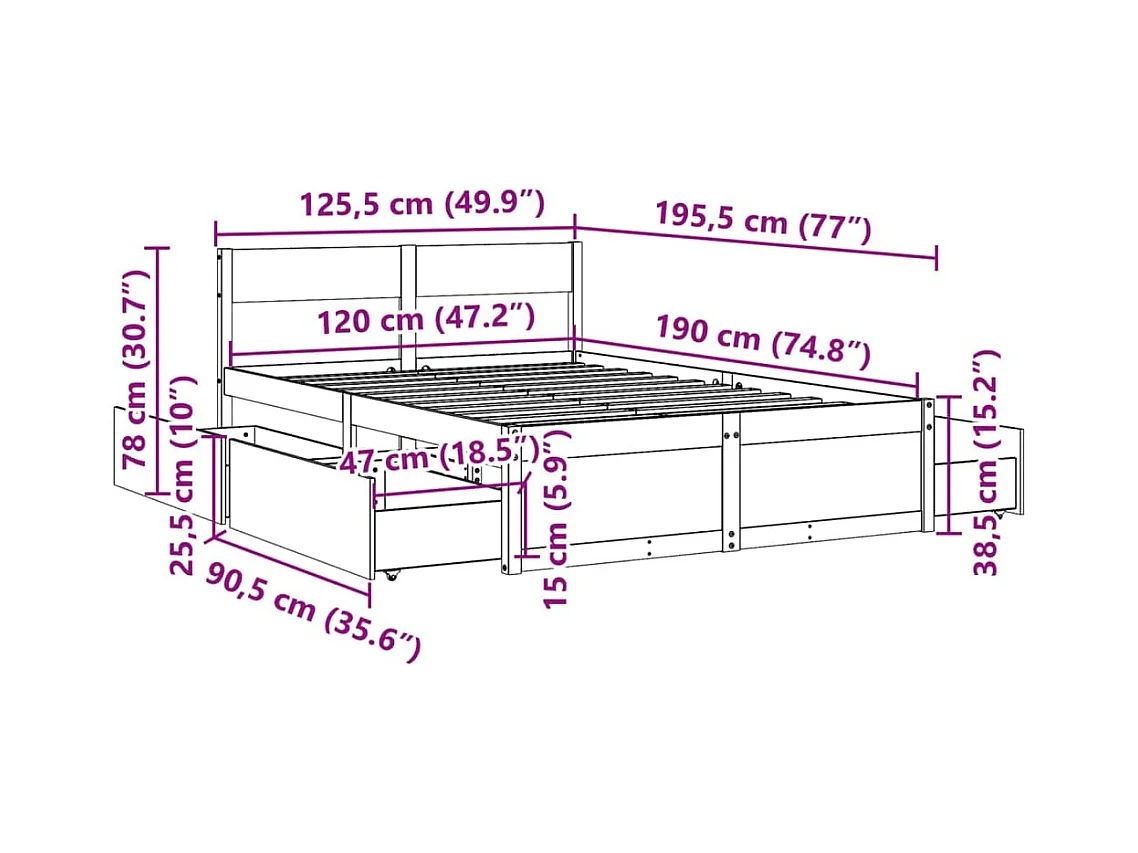 Bedframe zonder matras 120x190 cm massief grenenhout